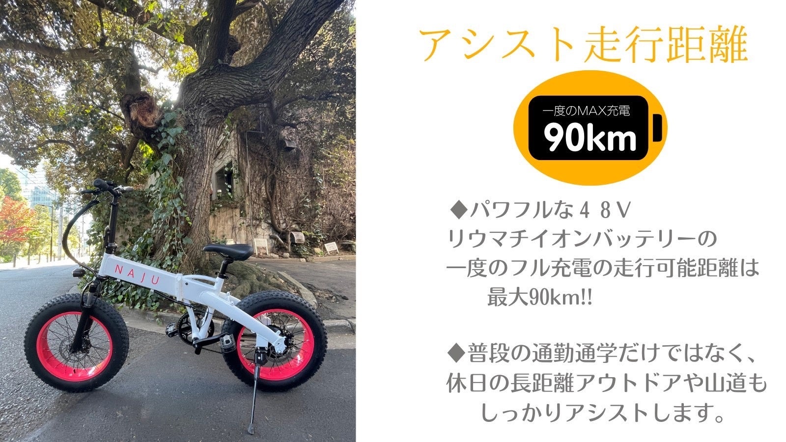 ■一度の充電で可能な、アシスト走行距離 ---約90km---