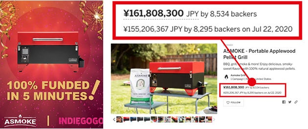 ASMOKE AS300はアメリカのクラウドファンディングサイトIndiegogoで開始5分でファンディング100%達成!!総額約1億6千万円、8,534人から支援を獲得!