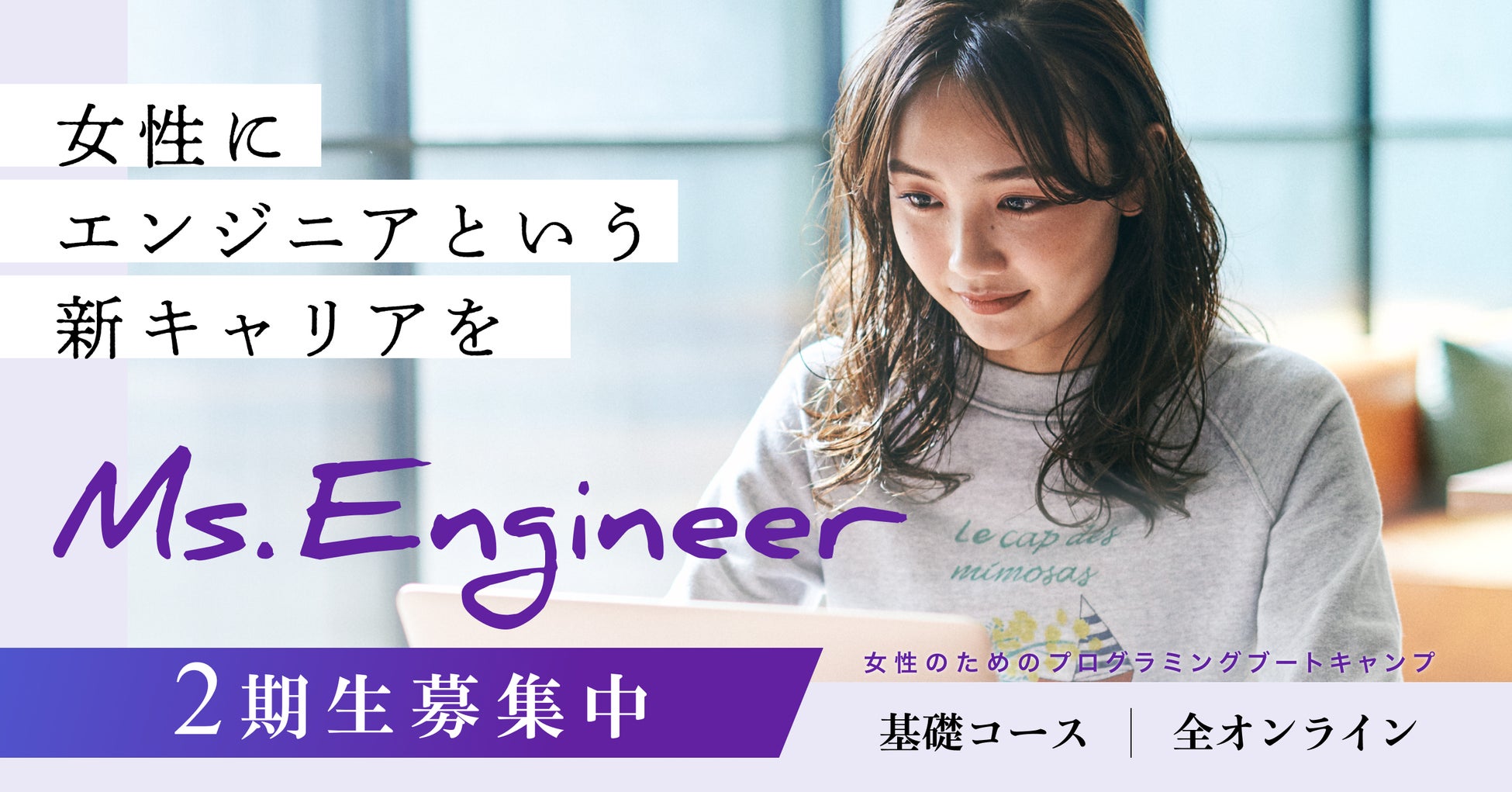 Ms.Engineerという事業を通じて「リスキリングの力で世界を押し上げる」というビジョンの実現に向けて一緒に挑戦してくださる方からのエントリーをお待ちしています。(募集ポジション詳細は、リリース下部に記載)