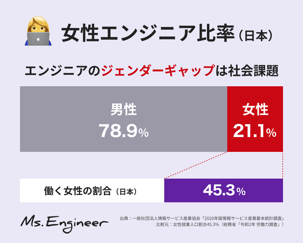 一方、IT業界に目を移すと、特にエンジニアは常に人材不足が続いています。2030年には50~70万人のエンジニア不足が予測されていますが、エンジニアの女性比率はまだ約2割。女性の雇用環境が悪化しているのに、IT業界は人手不足でジェンダーギャップがある。これは明らかに人材流動のねじれであり、この国が抱えている矛盾だと感じます。