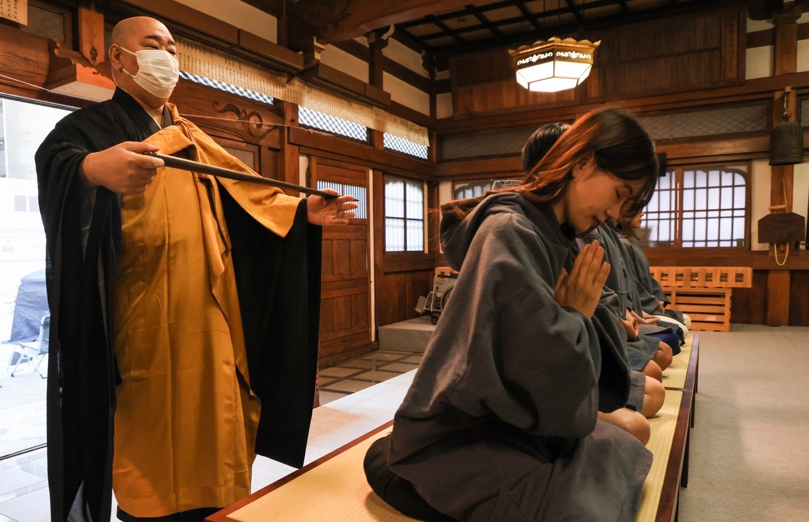 寺の本堂で住職による「サウナ説法」、座禅体験。瞑想の中心地であるお寺での僧侶の指導により、瞑想に慣れない方でも簡単に、心静かな「ととのい」に。