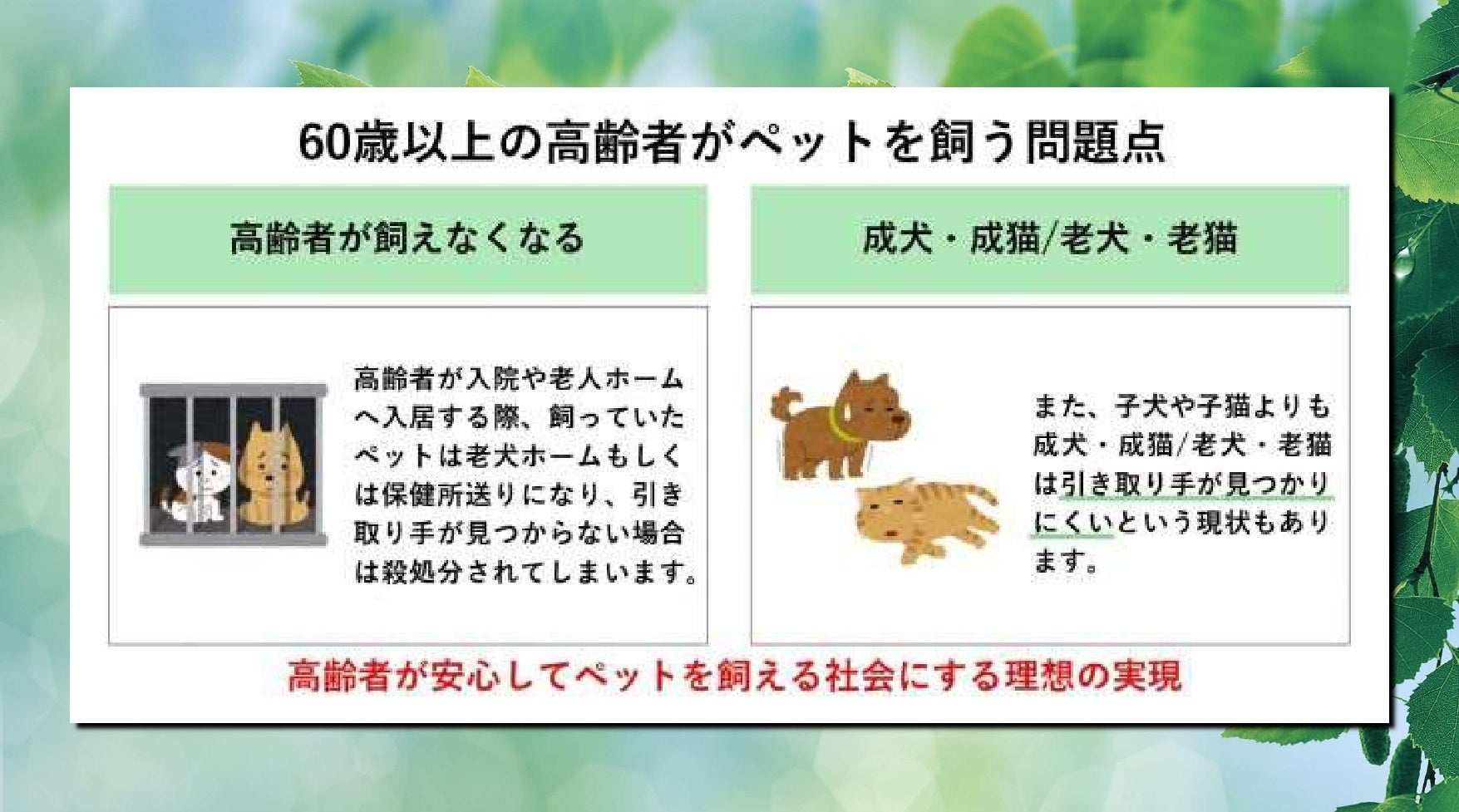 ペットを飼う高齢者問題について、一緒に考えてみませんか?