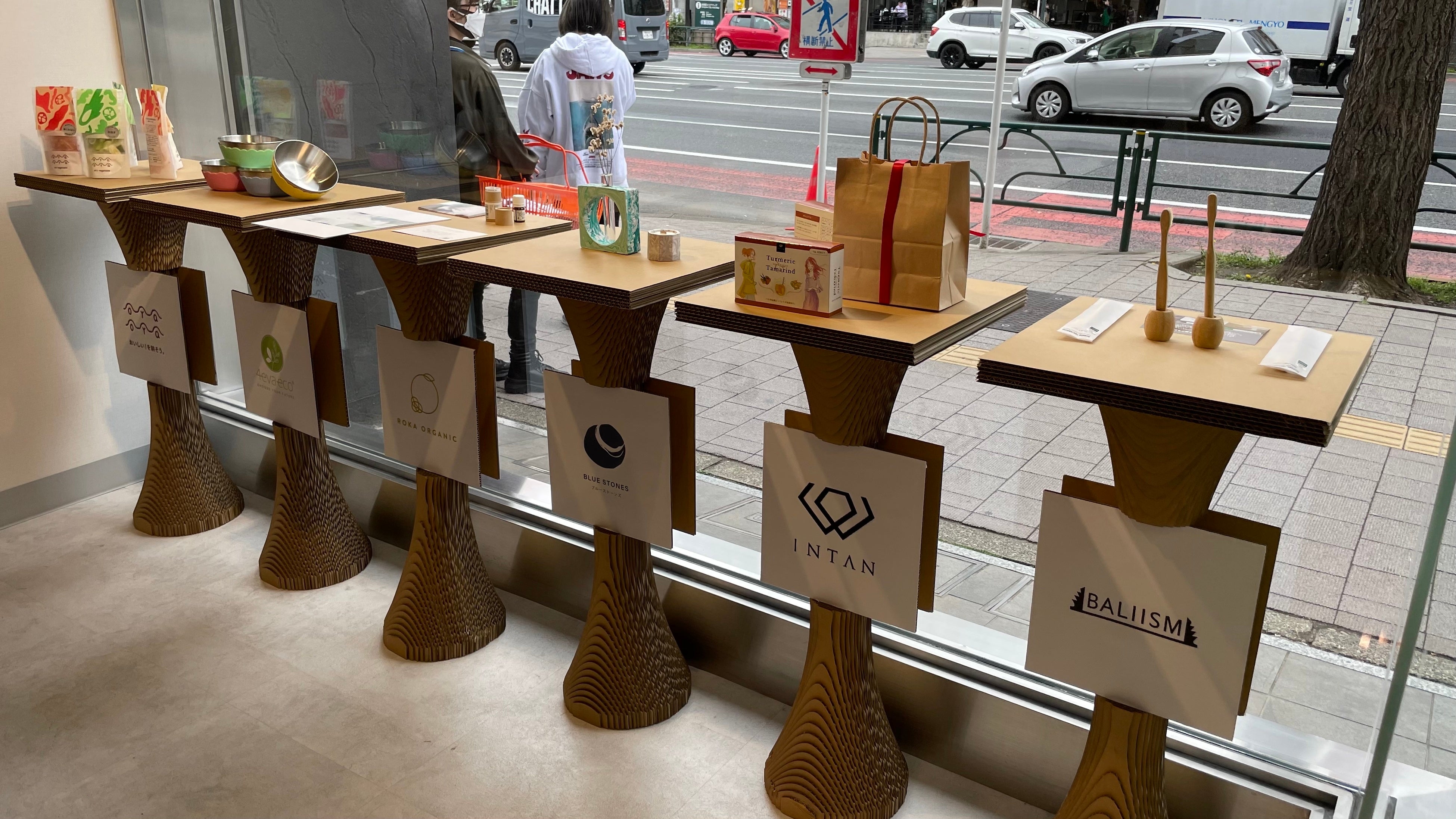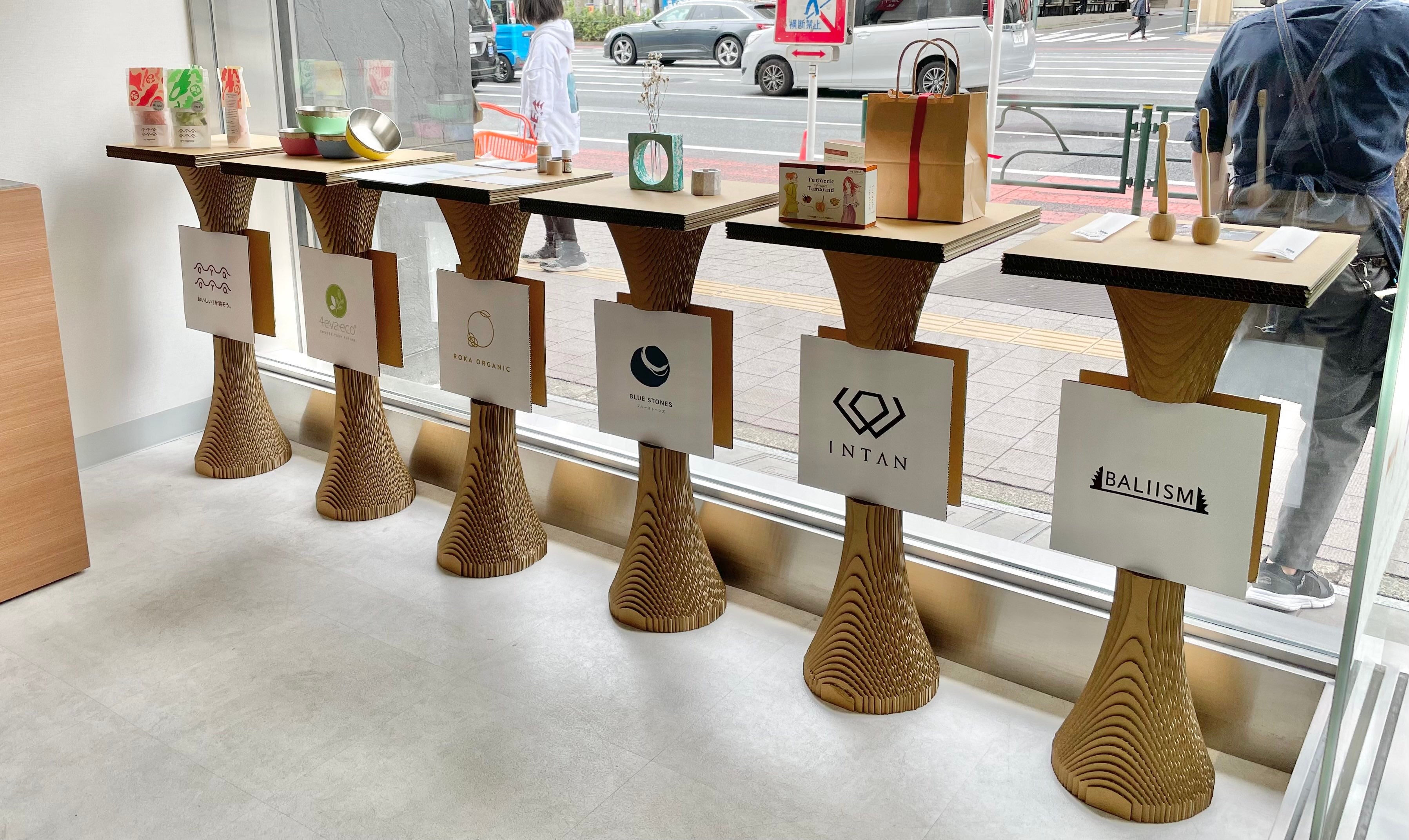 今回、そうしたエシカル・サステナブルに関連したイベント・展示会・ポップアップショップ等でご使用頂ける意匠性の高いダンボール什器の提供を開始いたしました。