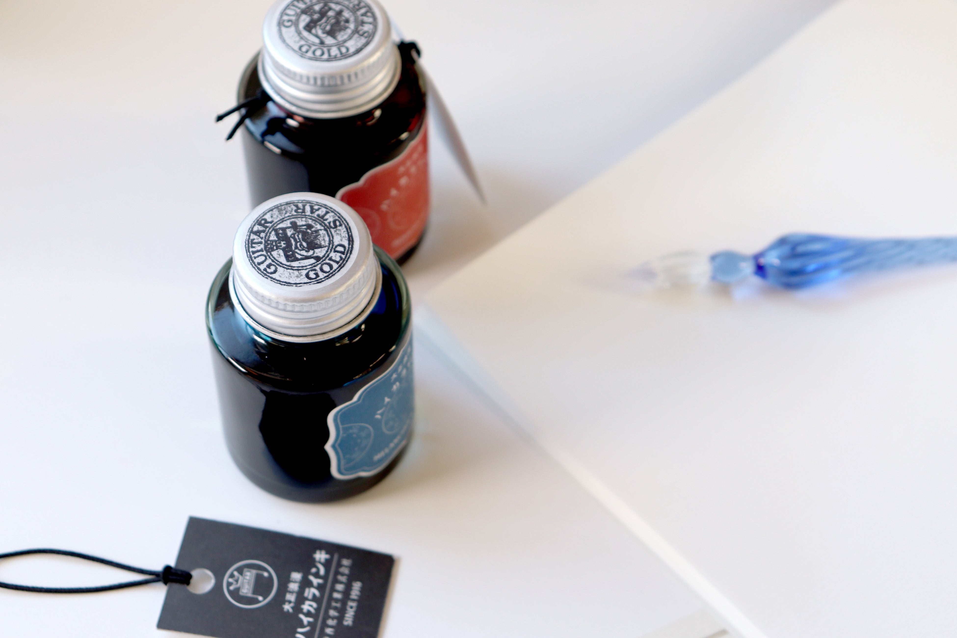 2021年より販売を開始した万年筆インキ『ギター 大正浪漫 ハイカラインキ』。