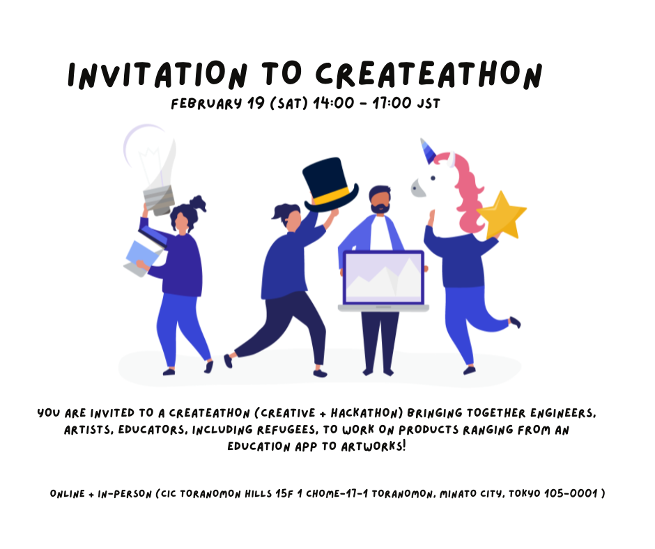 本イベントを通じて制作されたアートワークは全て、CreateAthon主催団体の一つであるNPO法人WELgee (所在地:東京都渋谷区、代表:渡部 カンコロンゴ 清花、活動内容:日本に逃れた難民のキャリア支援に取り組む)に寄附される予定です。