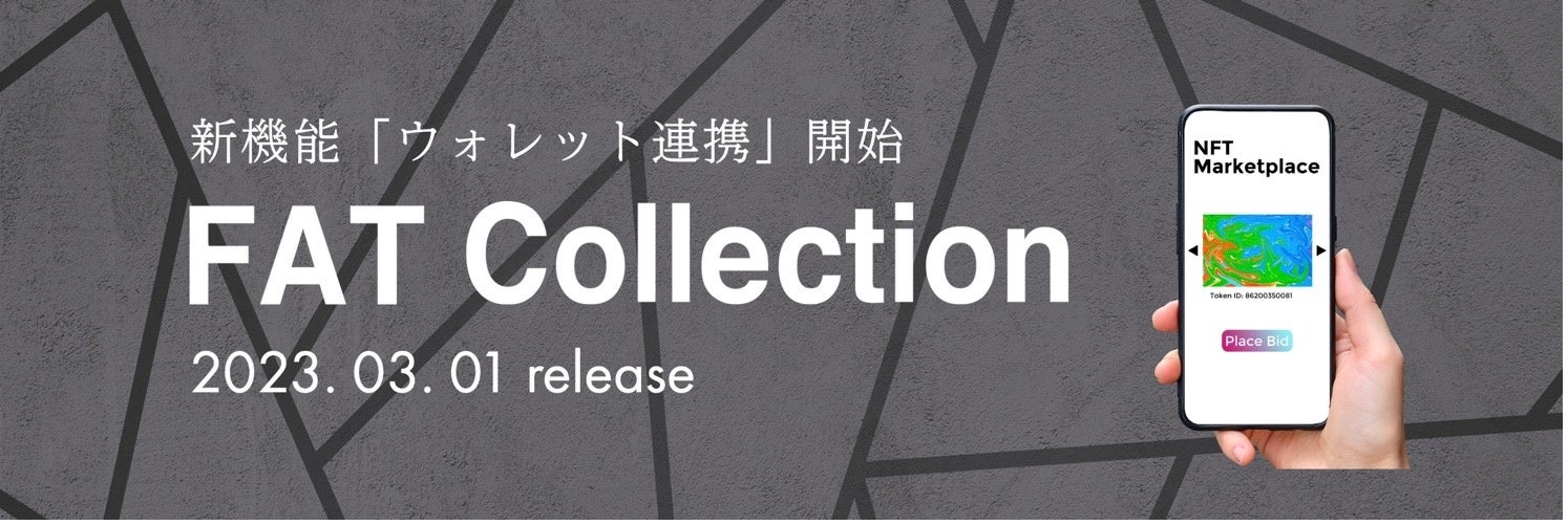 プライマリーのNFTマーケットプレイスとして運営してきた「Future Art Tokyo Collection」(以下、「FAT Collection」)は、2023年3月1日より仮想通貨やNFTを保管するウォレットとの連携を開始いたします。ウォレット連携により、ブロックチェーン上でNFTの送受信が行えるようになり、また、NFTマーケットプレイスへの接続・二次流通が可能になることで、FAT Collectionで取り扱うアーティストの作品を購入する楽しみが広がります。