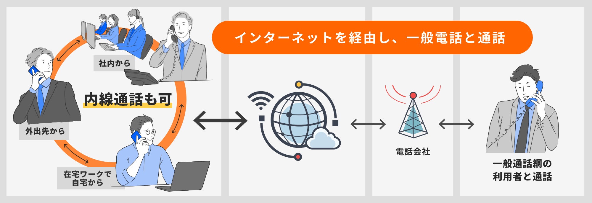 →インターネットさえあれば、どこにいても代表番号で通話できます!