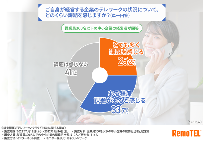 半数を大幅に超える経営者が、『自社のテレワーク状況に課題がある』と認識していることが判明しました。
