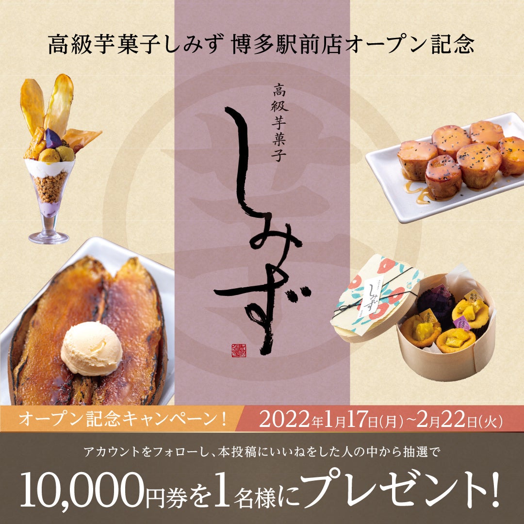 抽選で1名様に、「高級芋菓子しみず博多駅前店」で使える、