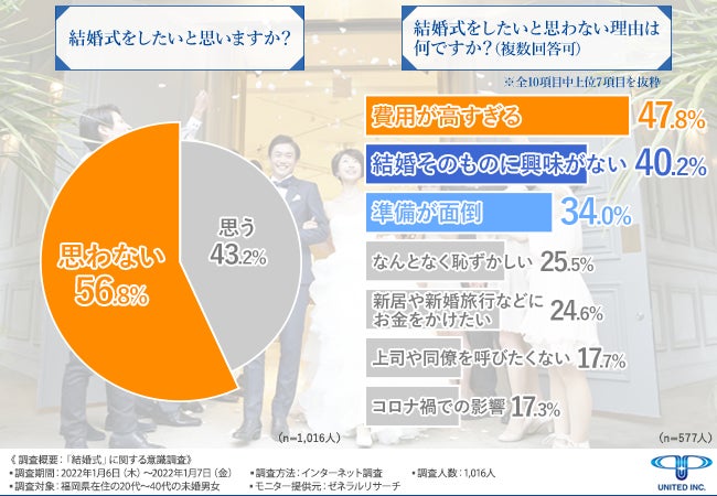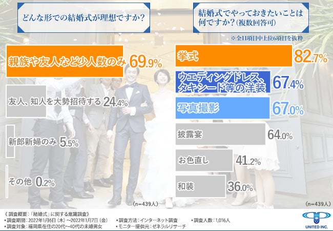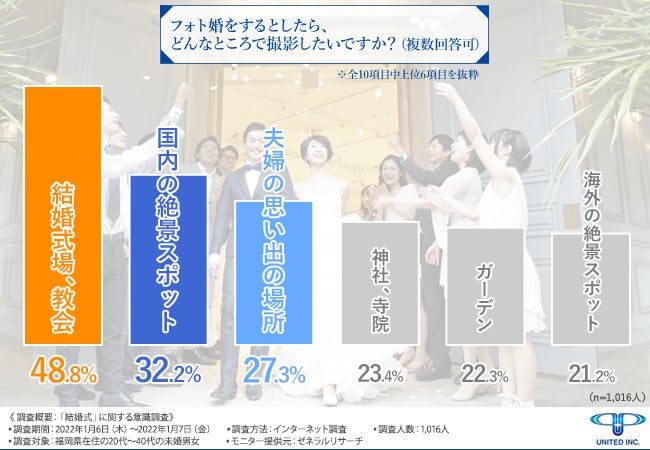 ブライダル業界に特化した映像演出を手がける株式会社ユナイテッド(本社所在地:山形県米沢市、代表取締役:阿部 達也)と、ベルコグループのベルクラシック福岡大濠は、福岡県在住の20代~40代の未婚男女を対象に、「結婚式」に関する調査を実施しました。