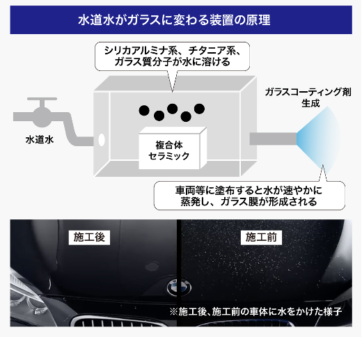通常の水道水を、セラミックを含んだ装置を通して散布するだけでガラスコーティングを施すことができる独自の技術を開発した株式会社システムブレイン(東京都 代表取締役:神田 智一)は、株式投資型クラウドファンディングサービス「FUNDINNO(ファンディーノ)」において、2022年1月20日(木)より募集による投資申込みの受付を開始することをお知らせします。