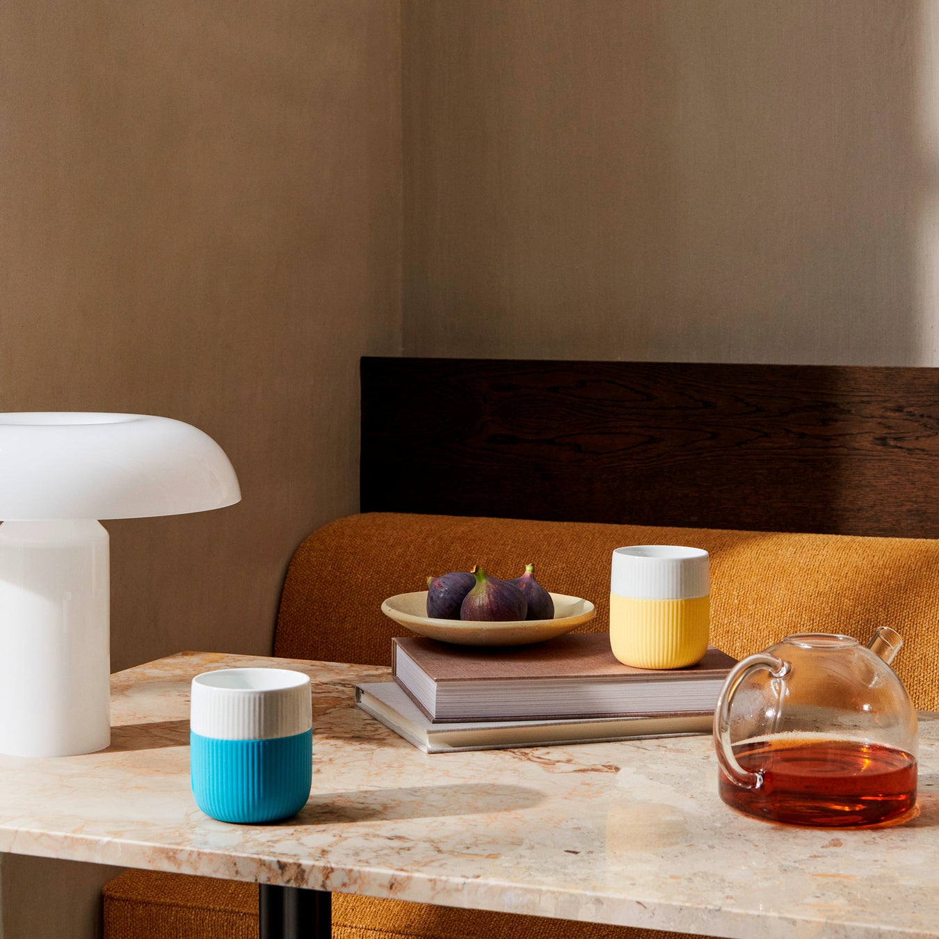 サンビームという名の春を一番に感じる温かな太陽の光と、カリビアンの言う名の清々しい青い空のカラーリングが、今季のフルーテッド コントラストから新登場。鮮やかでカラフルなマグで、春をお楽しみください。