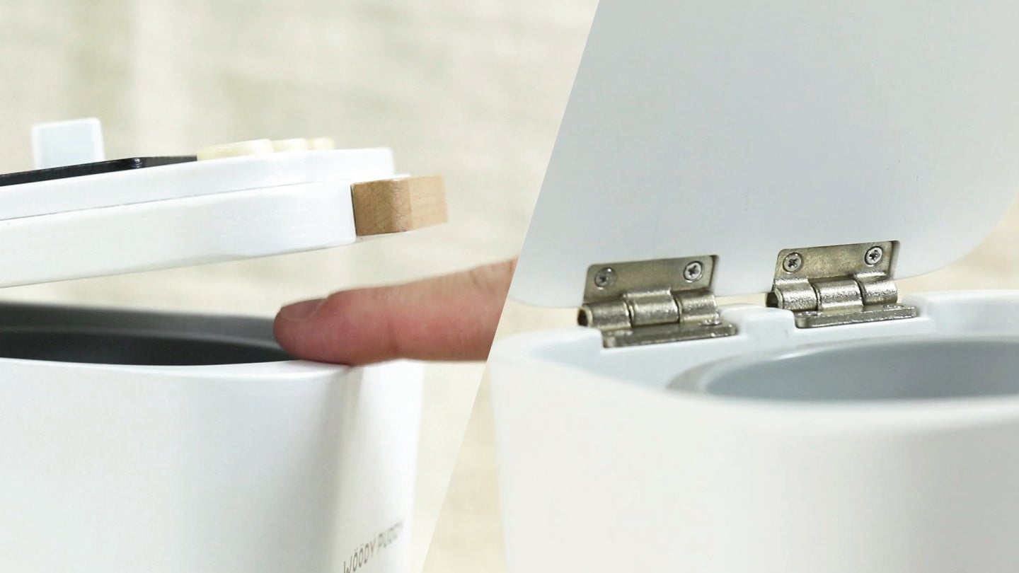 本体蓋にはゆっくりと開閉する仕様を採用しました。おままごとで遊んでいただくお子様にも、親御様にも優しい安心設計となっています。