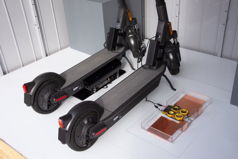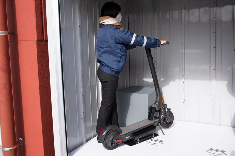 マリノアシティ福岡にて電動キックボードmobbyにワイヤレス給電の実証を実施