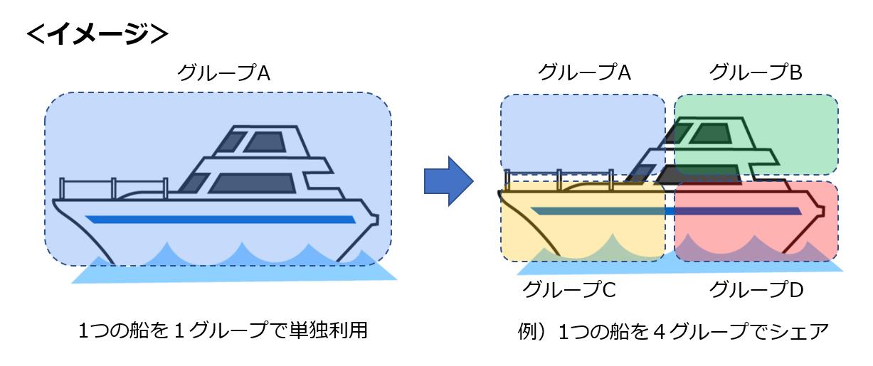 1つの船を他人同士の複数グループがシェアすることで、各グループには割安に乗船できたというメリットを提供し、同時に船長側には1つの運航からの収入が増える仕組みになります。