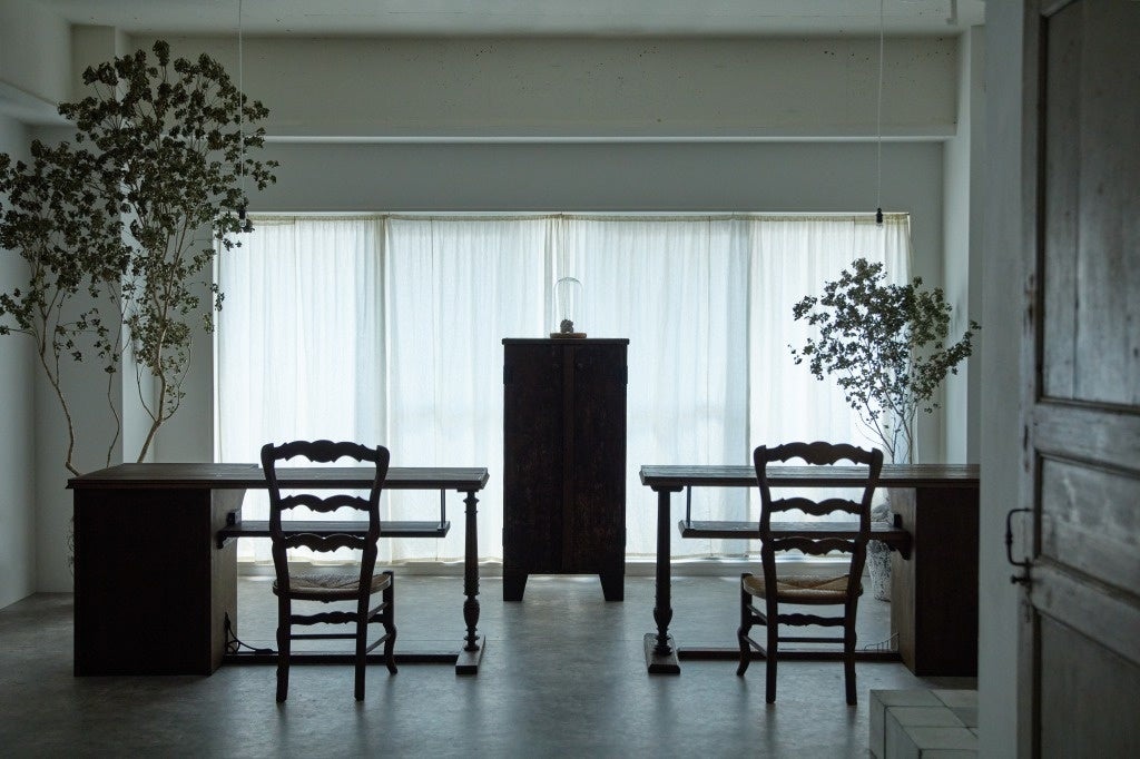 瀟洒な立地ながら、隠れ家のような佇まい。時間をかけて築いていくお客様との関係と重ね合わせた、古家具が並ぶ静謐な空間。特別なお客様向けのアポイントメント制ネイルサロンとして営業する他、その美学を体現するこだわりのプロダクトの販売もおこないます。また、アートギャラリーや撮影スタジオとしても運営いたします。