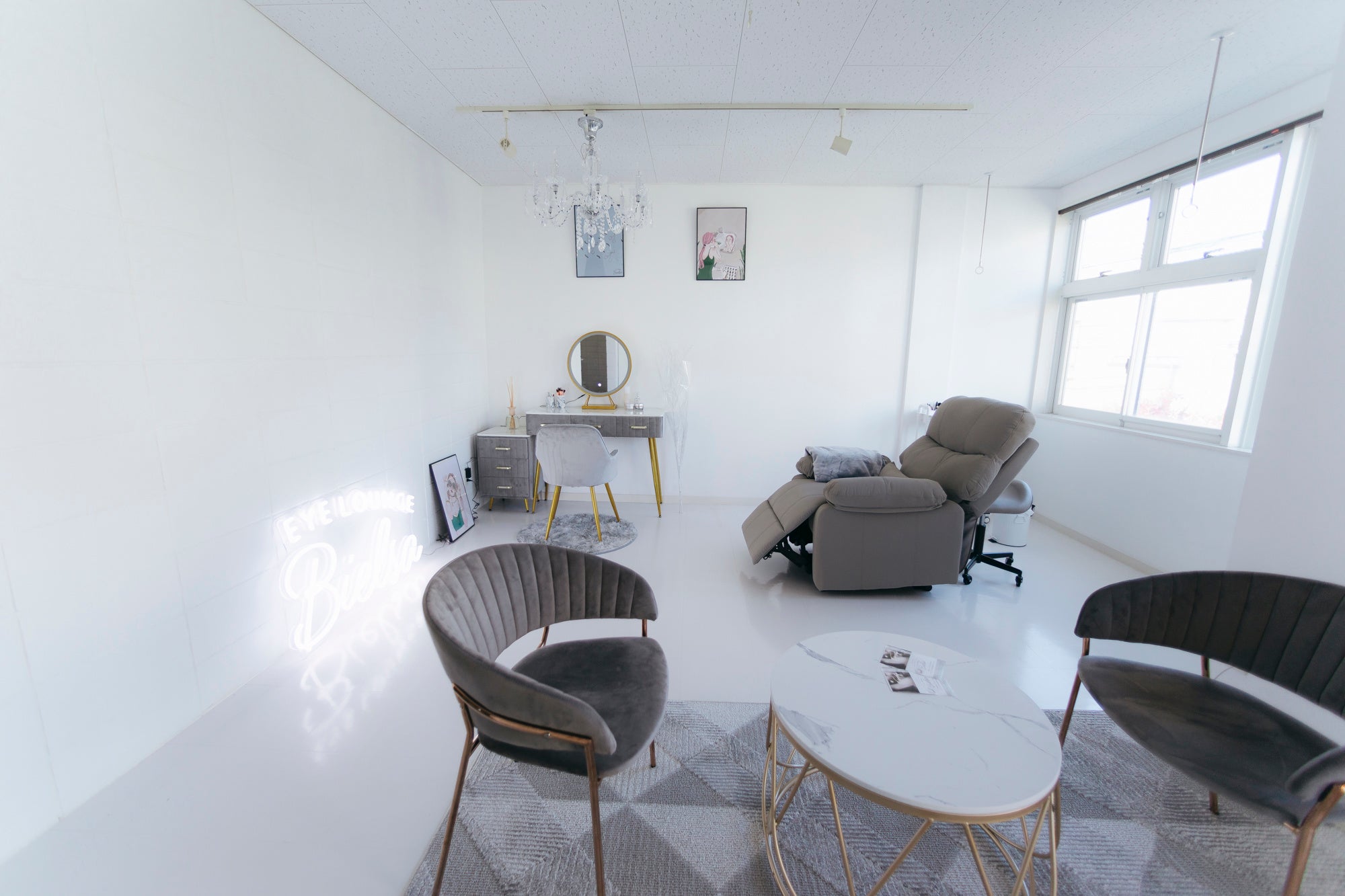 サロンは、同時間帯お一人様限定の完全予約制となっており、プライバシーや感染対策にも配慮した空間となっています。ホワイトを基調にした、まるでホテルのような高級感ある室内で、ゆったりとした癒しの時間をご堪能いただけます。