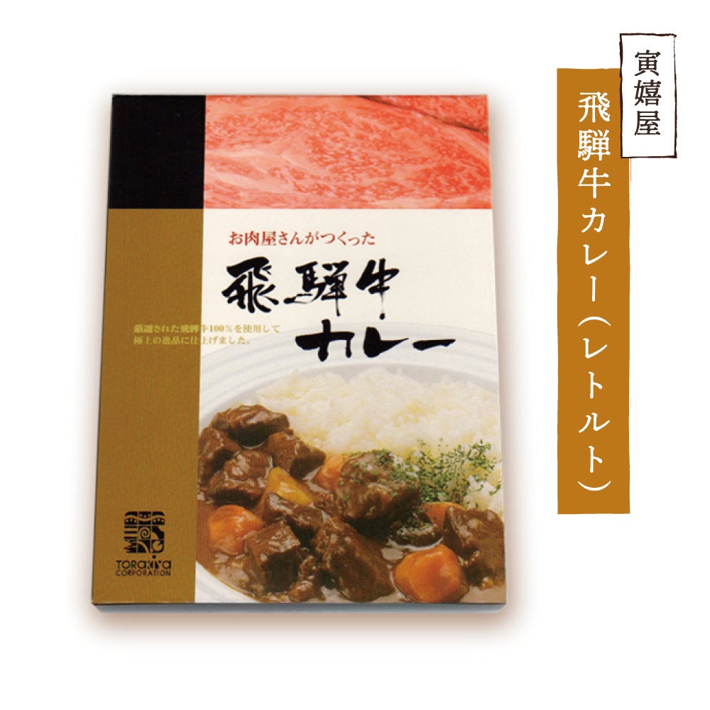 寅嬉屋の飛騨牛カレー(レトルト)は、厳選された飛騨牛の美味しい部位(スネ肉等)を使用。人参・玉ねぎと一緒にじっくり柔らかく煮込んでいます。これぞお肉屋さんが作った、お家でも楽しめる贅沢なレトルトカレーです。