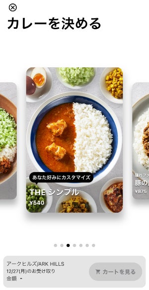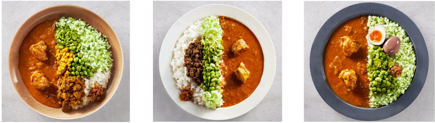 “TOKYO MIX CURRY”は専用のアプリから、「自分の好きなカレー」をカスタマイズで注文し、待ち時間なく受け取りができる日本初のアプリでしか買えないカレーを提供しています。アプリからの注文に限定することで、味の好みはもちろん、カロリーや価格などの計算も容易です。提供するカレーは、小麦粉・添加物不使用で、チキンと魚介のWスープに塩こうじの旨味を加えたものをベースとし、キーマカレーや野菜、煮卵、レモンアチャルなどの10数種類のトッピングから好みのものを追加し、食べる際に"MIX" することで最高の味になるカレーを目指しています。