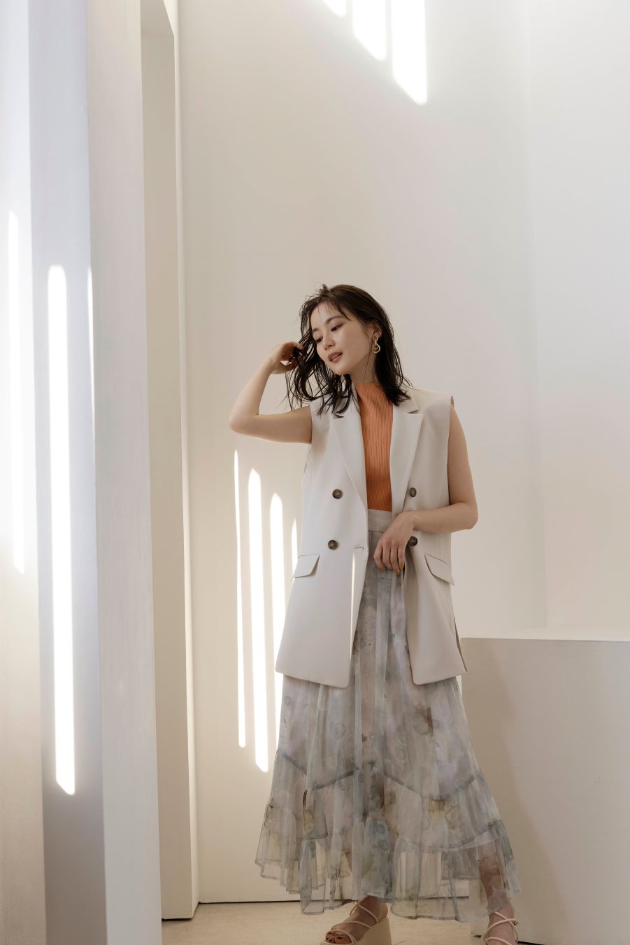 自分的に新鮮なスタイリングや、ファッションに合わせたヘアメークで、今まで見たことのなかった表情を知ることができて楽しかったです。今回は Springコレクションから10スタイリングを着用させて頂いたのですが、1カットごとに少しずつ慣れていき、だんだん表現できるようになり、充実感がありました。