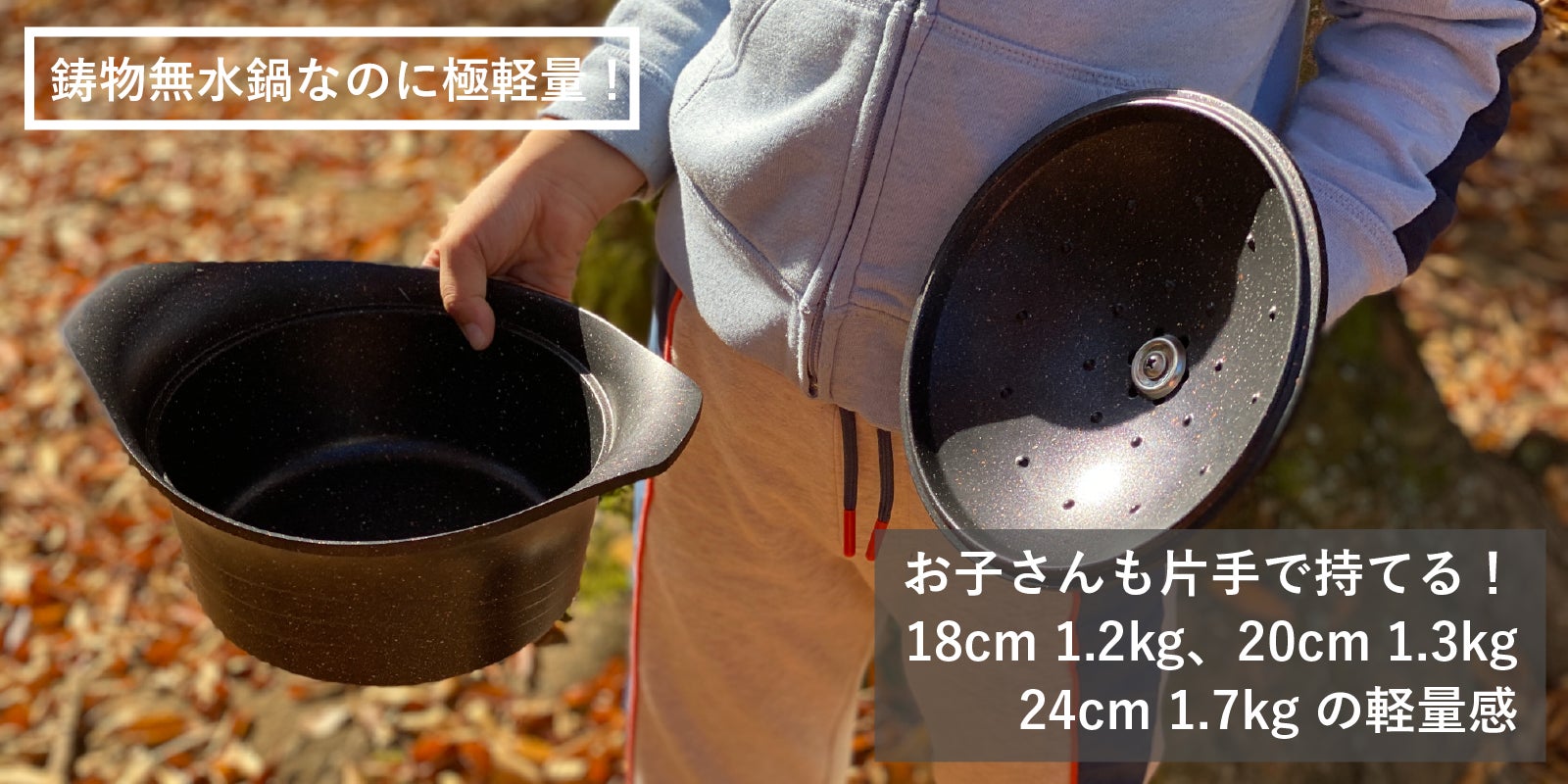 ●【軽量感・手入れが楽】18cmミニ〜24cm定番サイズまで片手で持てる!つまみを取り外せば手入れ収納が楽々。
