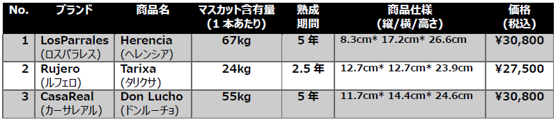熟成期間 | 商品仕様 (縦/横/高さ) |