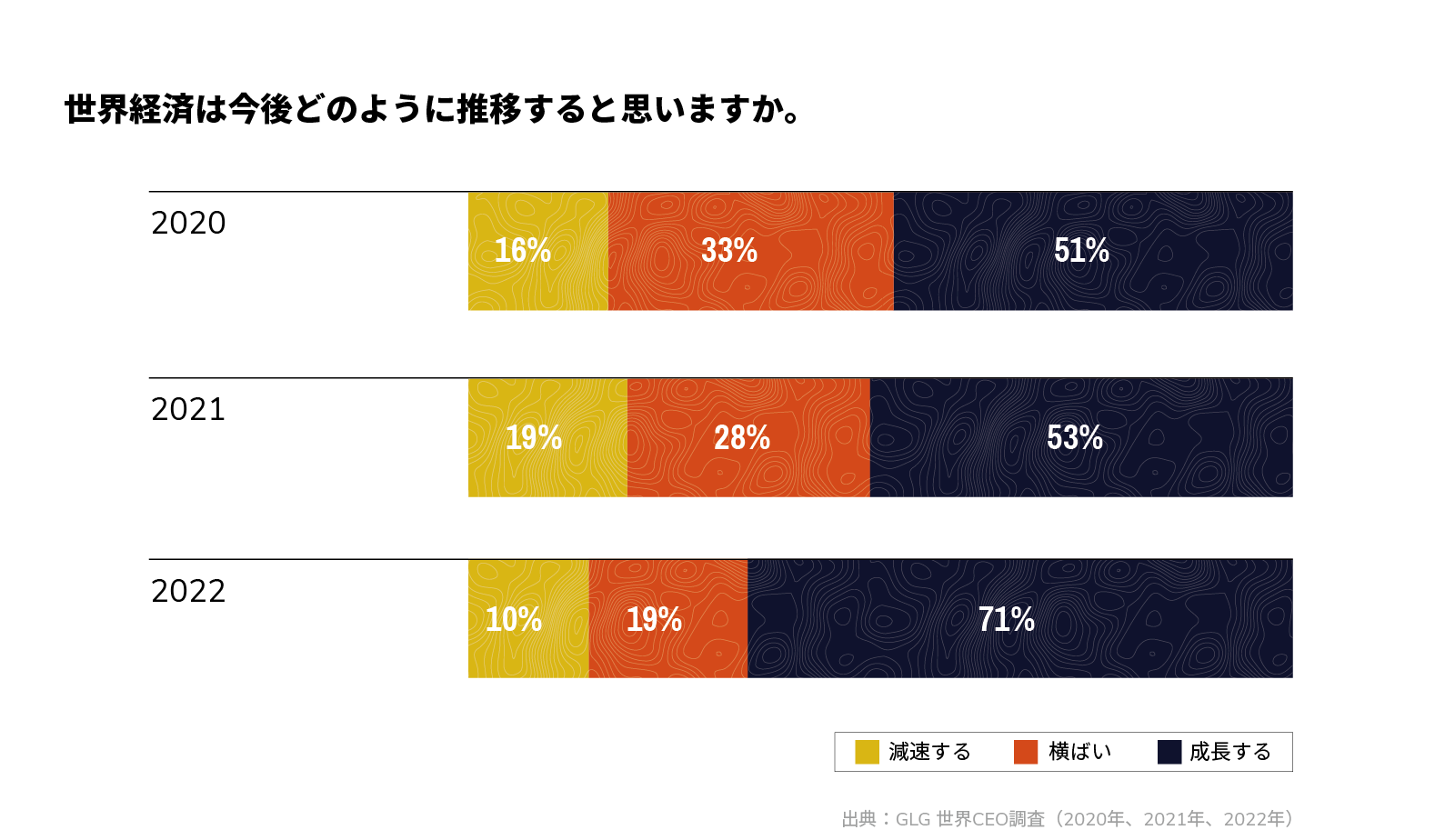 世界471名のCEOへの意識調査。CEOは2022年のビジネスと世界経済を楽観視