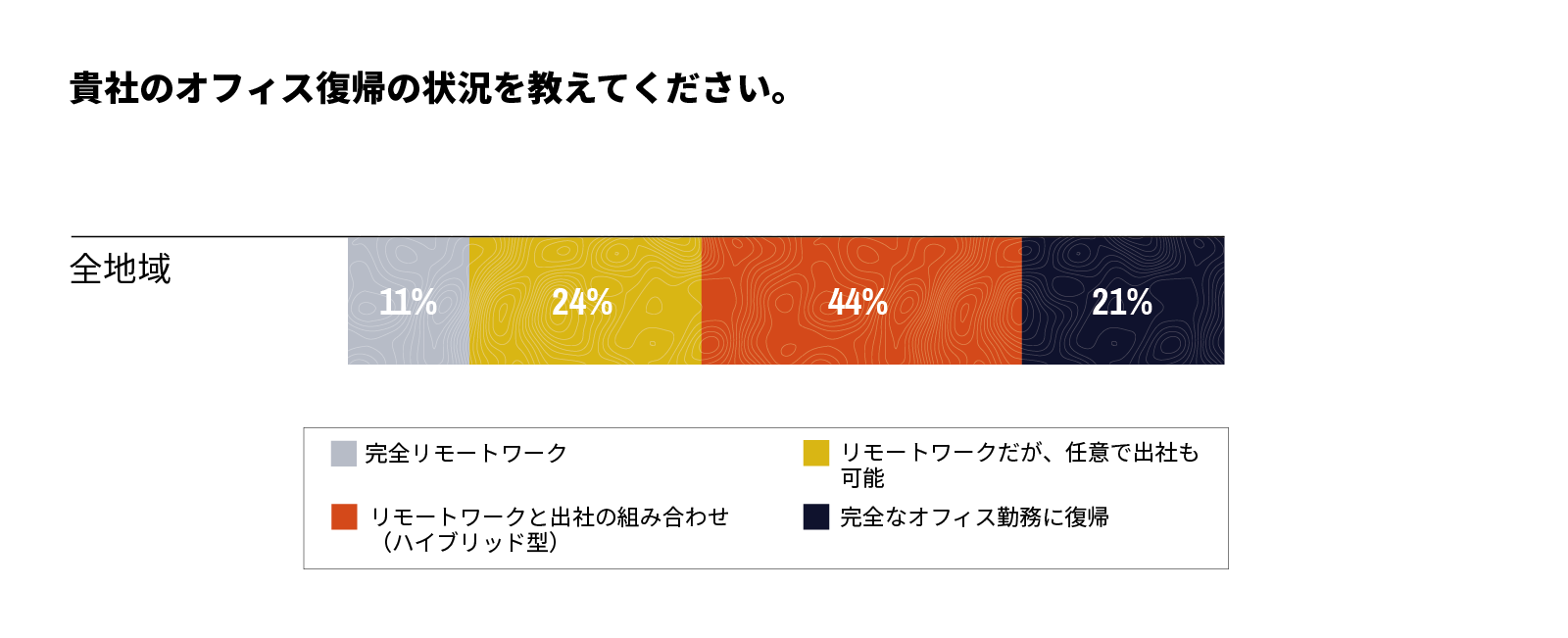 従業員に出社を要求している企業は、依然として少数派でした。オフィスを再開しつつも、従業員に毎日の出社を義務付けていない企業が大半(68%)を占めています。