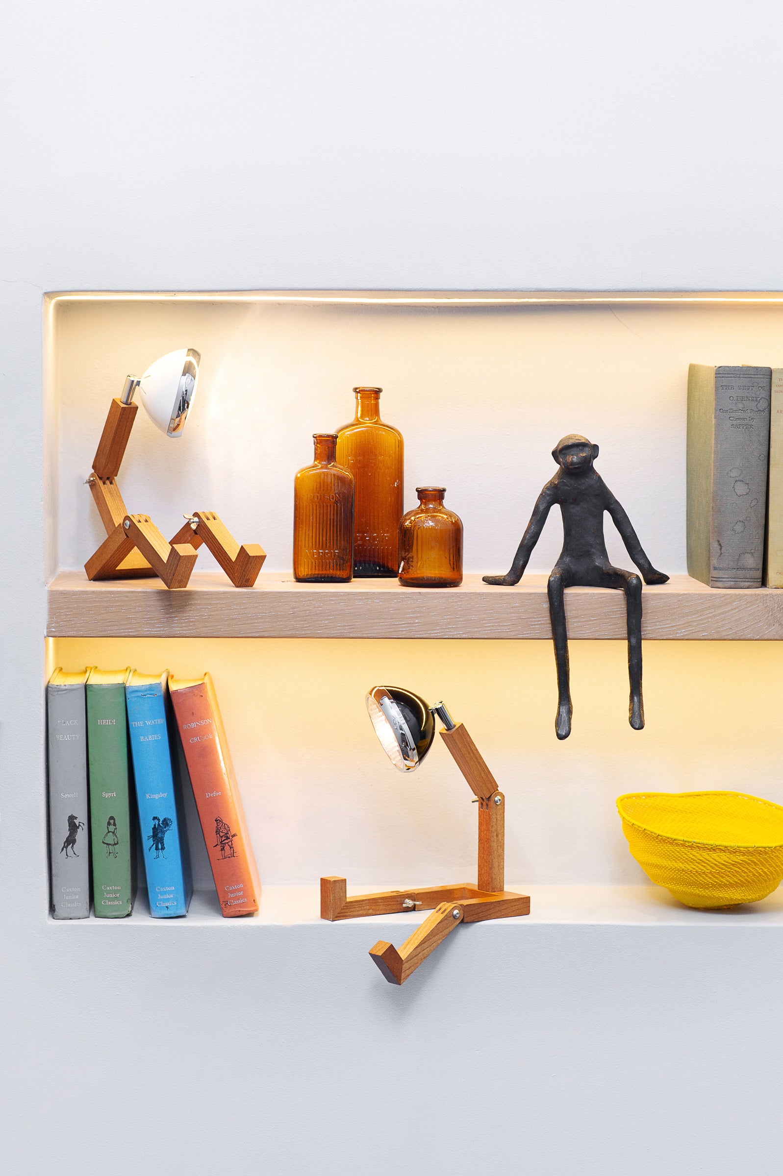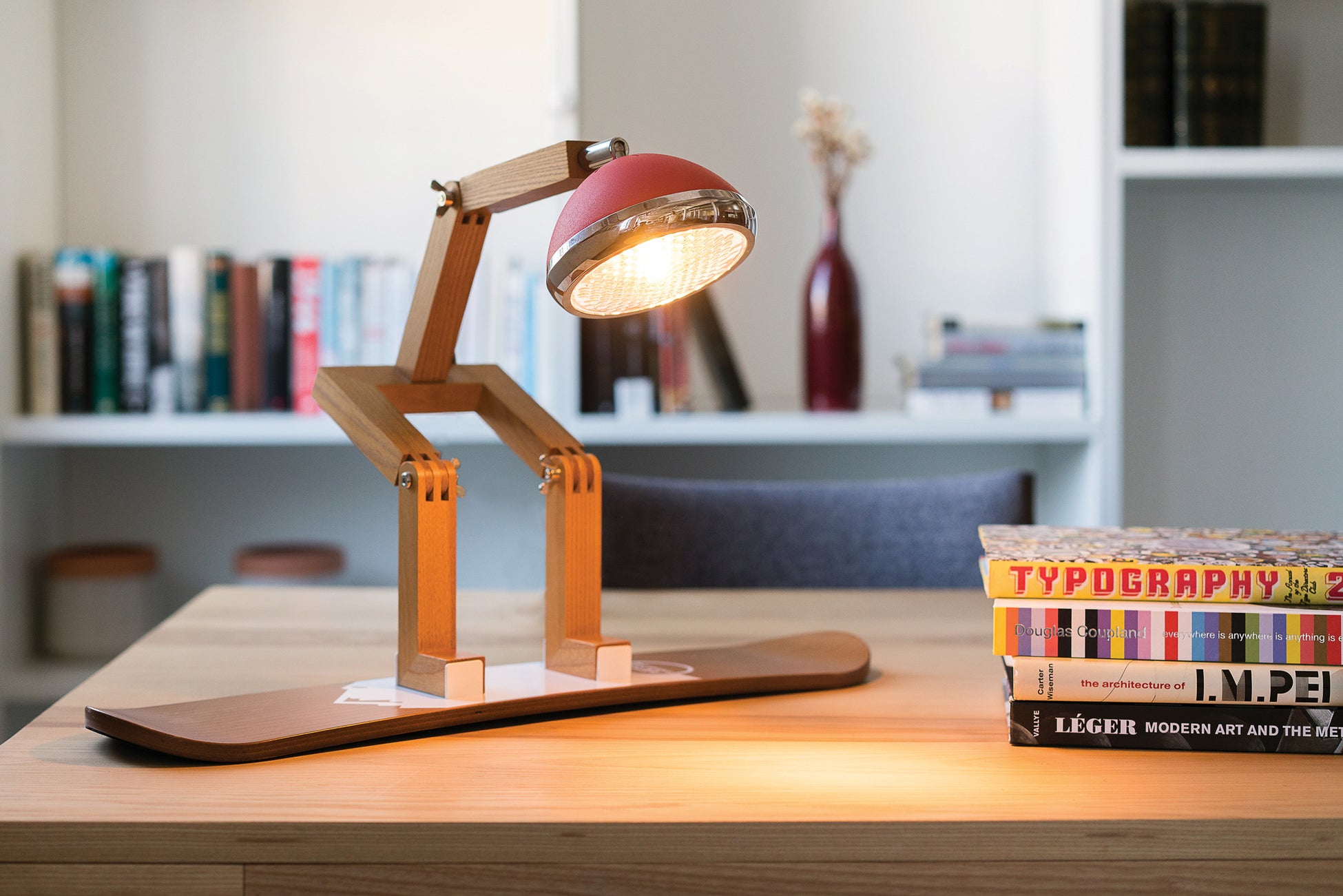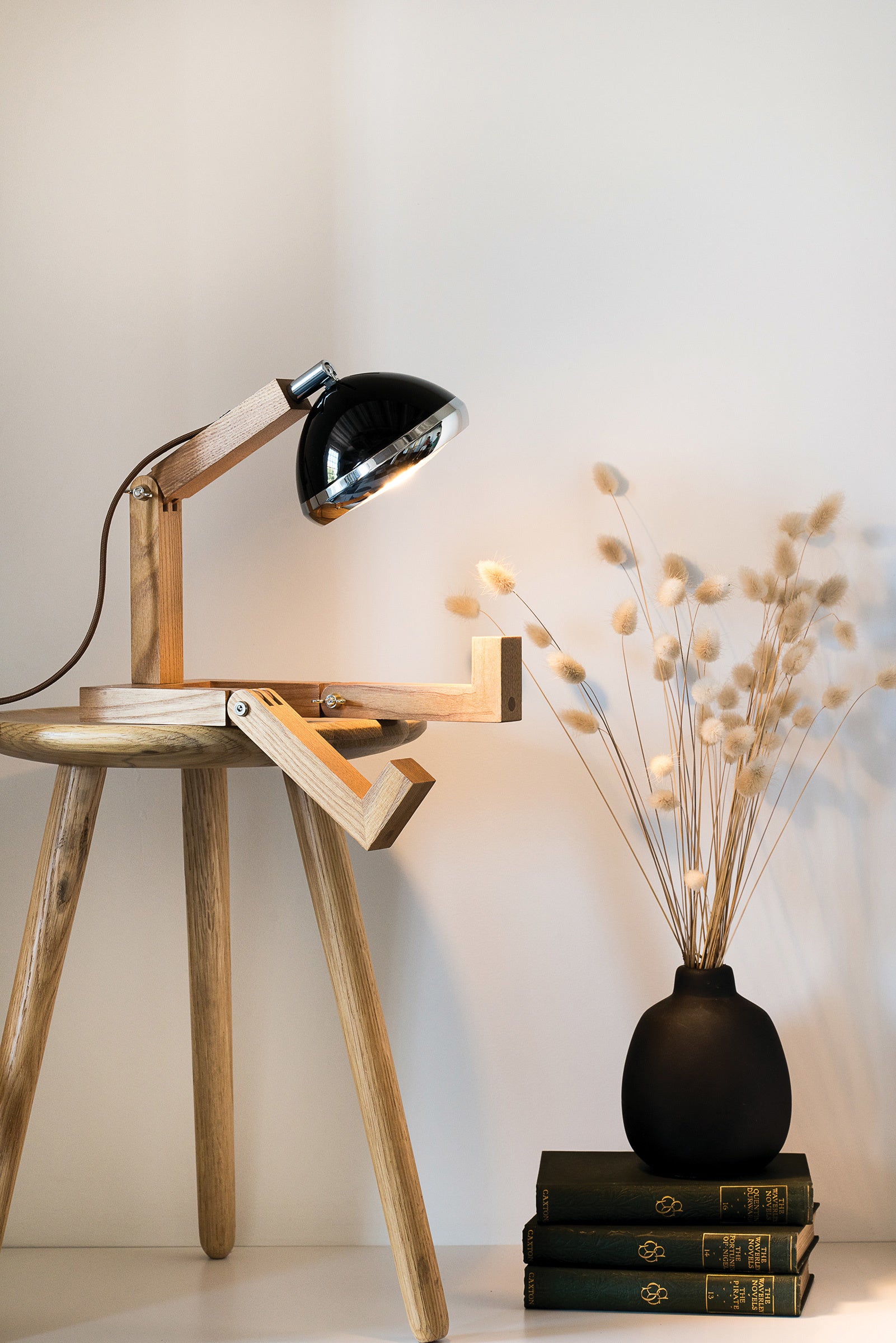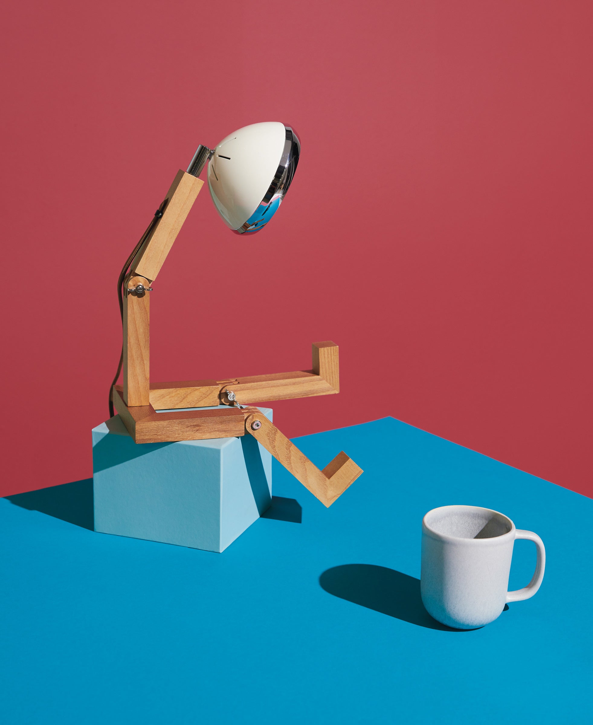Mr. Wattosonの特徴です。彼は手作りのLEDランプです。 工場での生産ではなく、手作りです!彼はこの事実を誇りに思っており、あなたにもそれを誇りに思ってほしいと思っています。彼の体はトネリコの木であり、彼の頭は1946年のベスパのヘッドライトに触発されています。それが彼をとても有名にした理由です。 また、彼は非常に柔軟な関節を持っているので、光のあたる焦点をすばやく移すことができます。