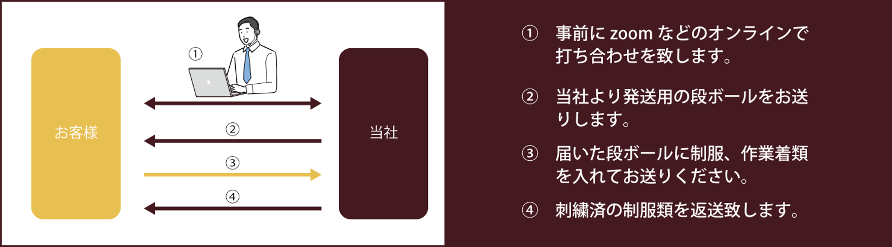 一方で、「作業で使用しているエプロンに、社名だけ入れてもらえないか」「ホームセンターで買った作業着を着ているが、営業先で覚えてもらえない。ロゴを刺繍できないか」「新しくロゴを制定した。着ている制服に新しいロゴだけ刺繍できないか」といった相談が不定期にありました。