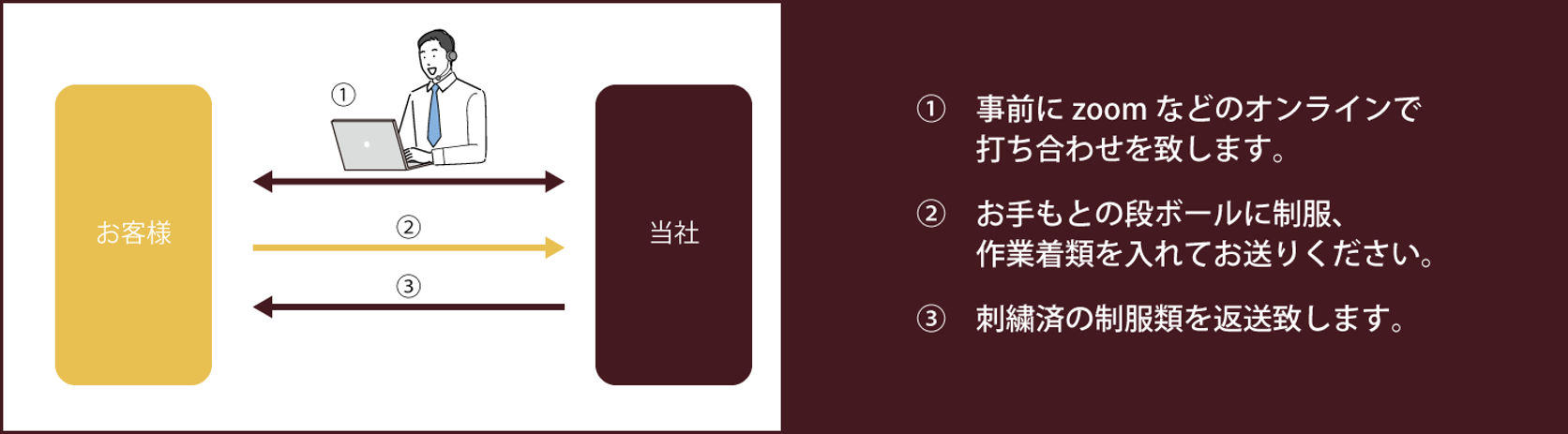 - 今、着ている制服や既製の作業着に、ロゴや社名を1枚から“あとづけ刺繍”ができます。
