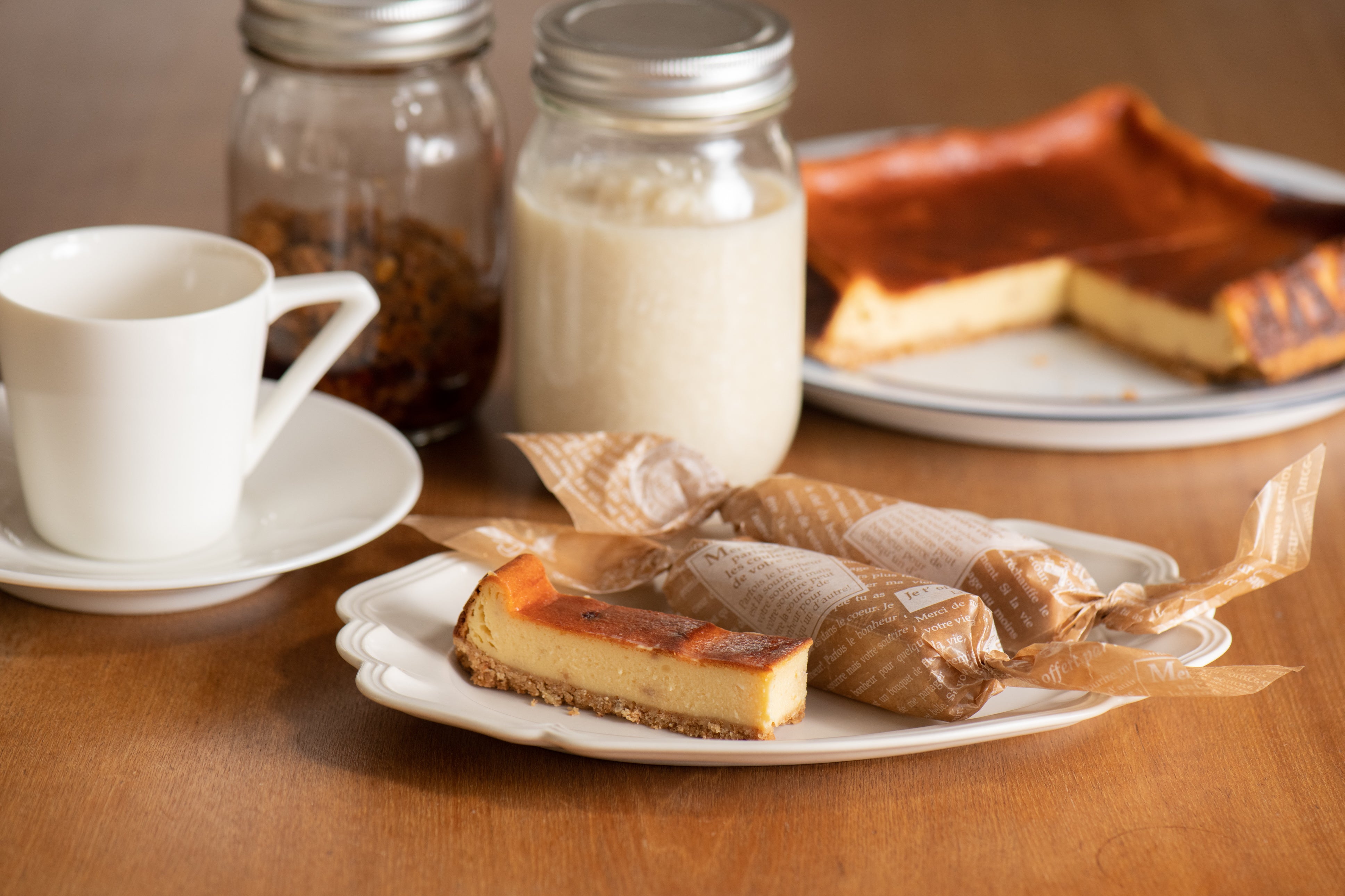 「W麹の醤油香るチーズケーキは、ほのかに醤油の香りがし、温めて2度美味しい。」