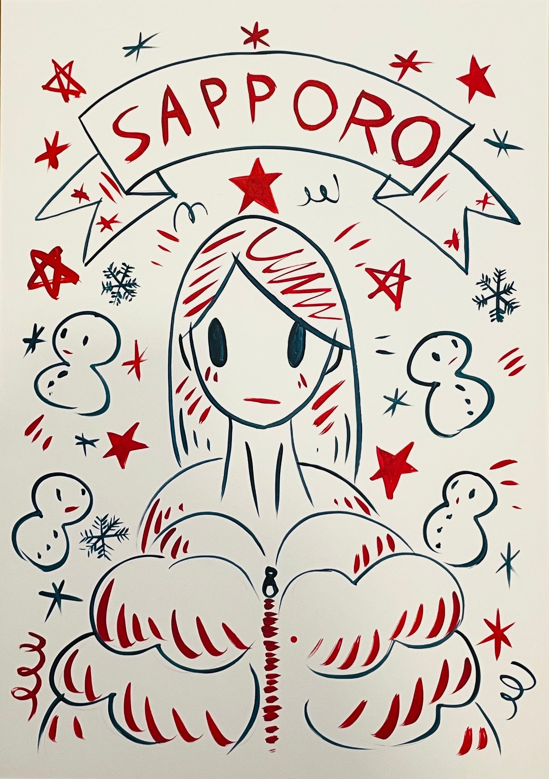 本EXHIBITIONでは、天野タケルが今回の展示のために札幌をテーマに描き下ろしたVenusのシルクスクリーン(エディション30部)、初展示となる原画作品、Venusをモチーフにした一輪挿しなどを展示及び販売いたします。
