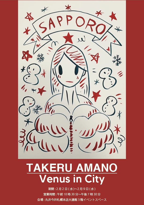 展示作品が即日完売するなど、世界的にも注目を集めているアーティスト天野タケルのPOP UP EXHIBITION『Venus in City』を、2022年2月2日(水)より丸井今井札幌本店にて開催いたします。