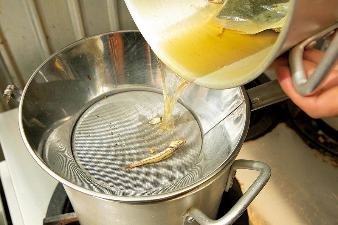 サバやサンマ、ウルメ、カツオ、昆布、椎茸などさまざまな乾物から出汁を引いてカレーと合わせることで