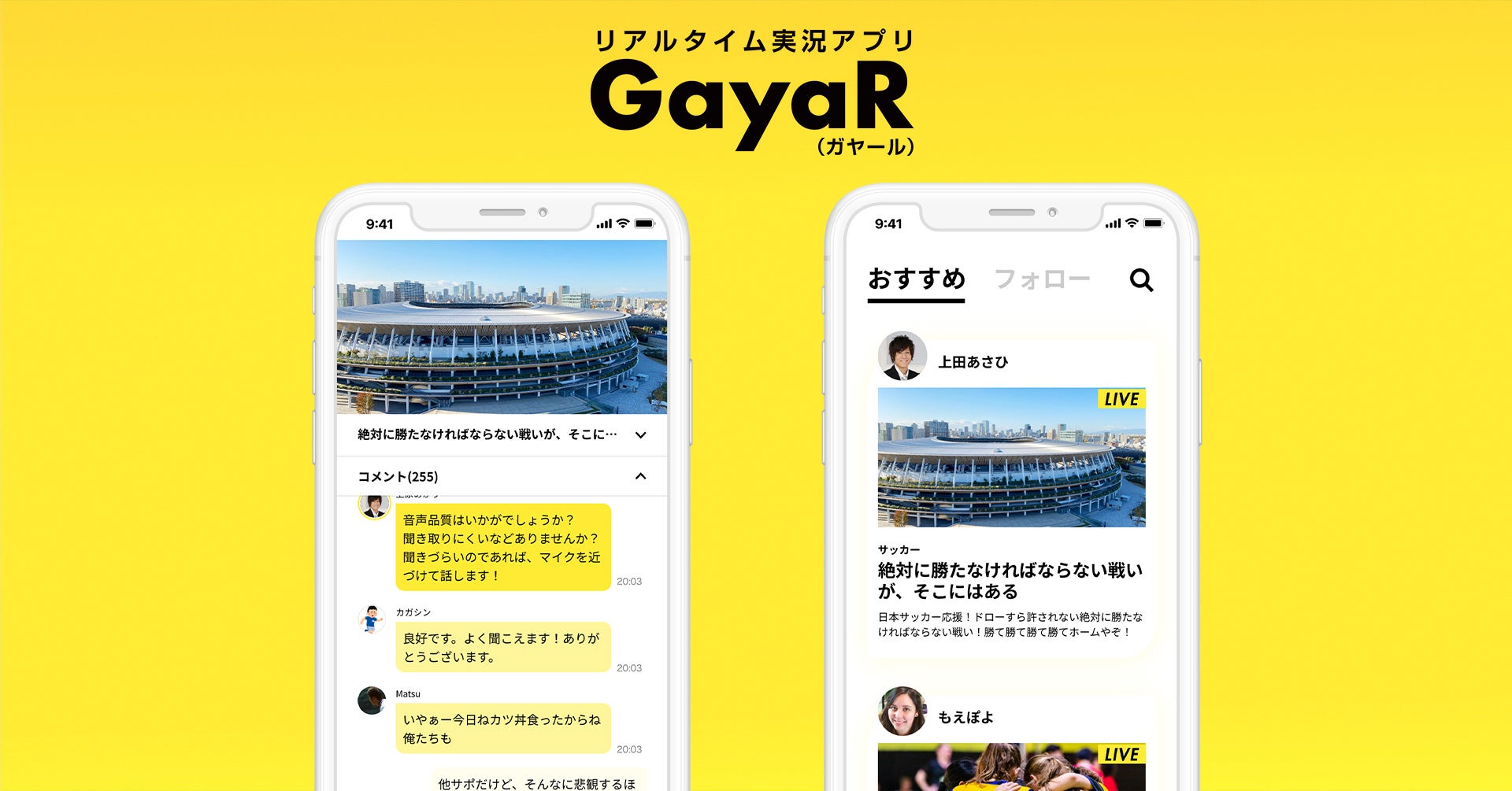 リアルタイム実況アプリ「GayaR」、アプリリニューアルのお知らせ