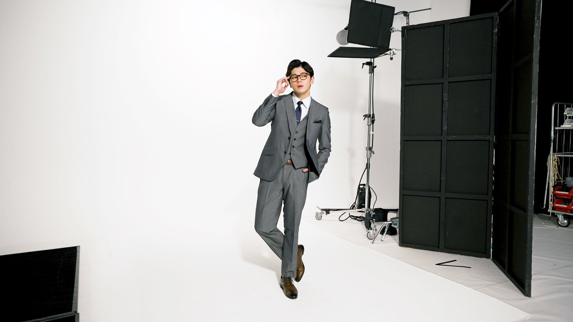 撮影当日は、大きな体型に見せるための特殊メイクを施されている場面や、メガネを使って知的でクールなショットを決めている場面を見せてくれた眞栄田さん。眞栄田さんの役に入り込むこだわりの強さにスタッフ一同魅了され、活気ある撮影現場となりました。終始落ち着いた様子でさまざまなポーズを魅せていく眞栄田さんや、スタッフと入念にカメラチェックを行う眞栄田さんをお楽しみください。