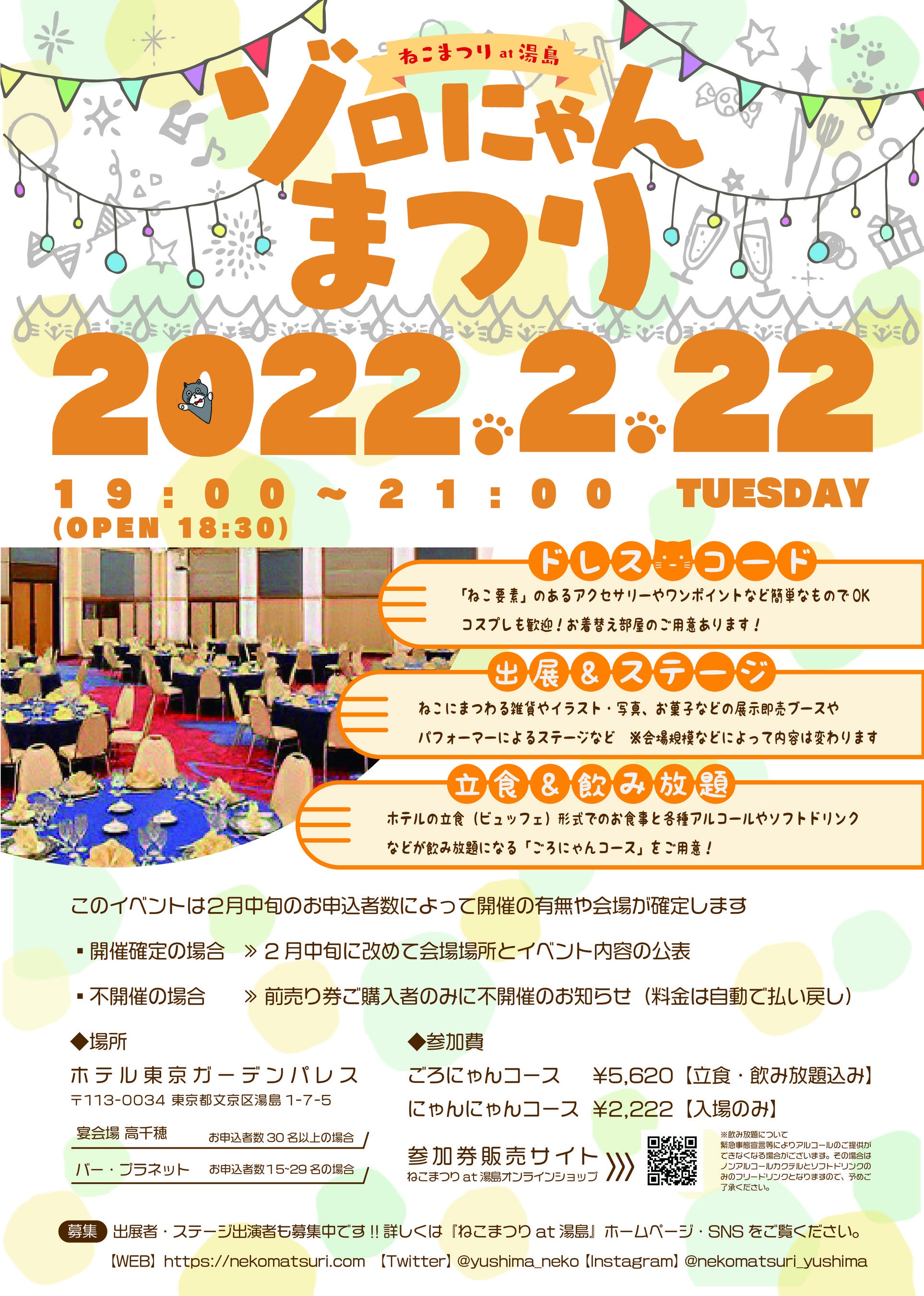 ねこまつり at 湯島実行委員会(所在地:東京都文京区、代表者:海老原 久美)は、文京区湯島地域にて『第14回 ねこまつり at 湯島 ~猫でつなぐ湯島のまち~』を2022年2/16(水)~3/13(日)に開催します。
