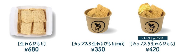 ■小箱(200g)680円/カップ(2個入り)350円 /カップ入り生わらびもち(バニラアイストッピング)420円 ※黑蜜追加 50円