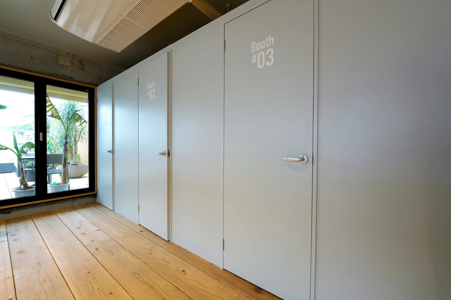 オンラインミーティングや、集中したい時などに利用できる予約も可能なプライベートルームを3部屋ご用意しています。