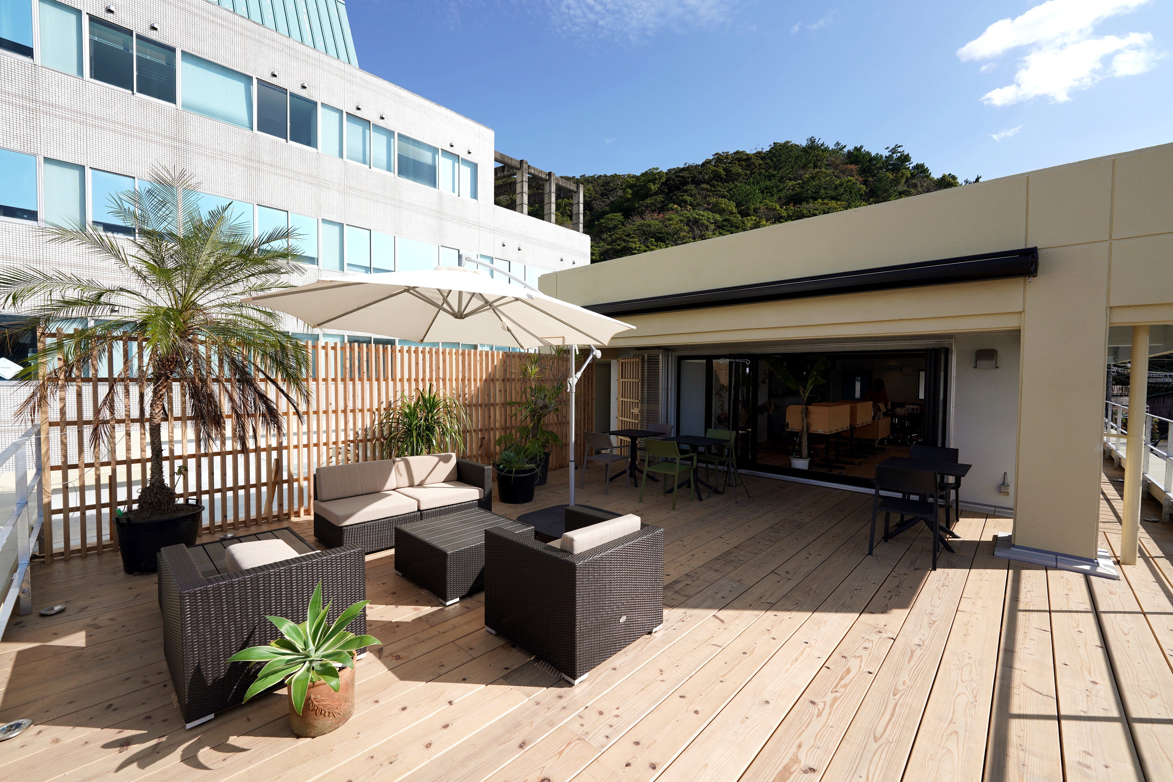 本施設は、瀬戸内町役場の敷地内に位置し、これまで地域の福祉センターとして運営されていた施設の2階部分をリニューアルし運用していきます。本施設の利用者が地域の事業や住民とつながることで地域活性化の起因となり、また、豊かな自然を肌で感じ、アクティビティから体験を得て、仕事をしながらもマインドフルネスを感じられる“ワークフルネス”も叶えます。施設の会員登録は開始しておりますが、現在鹿児島県に発令されているまんえん防止期間中は利用を控え、解除後に利用を開始いたします。