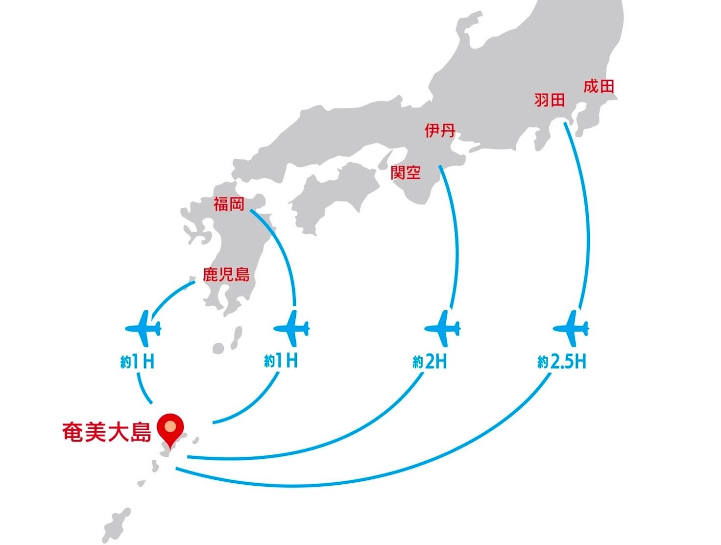 JAL:鹿児島空港発→奄美空港 約55分〜