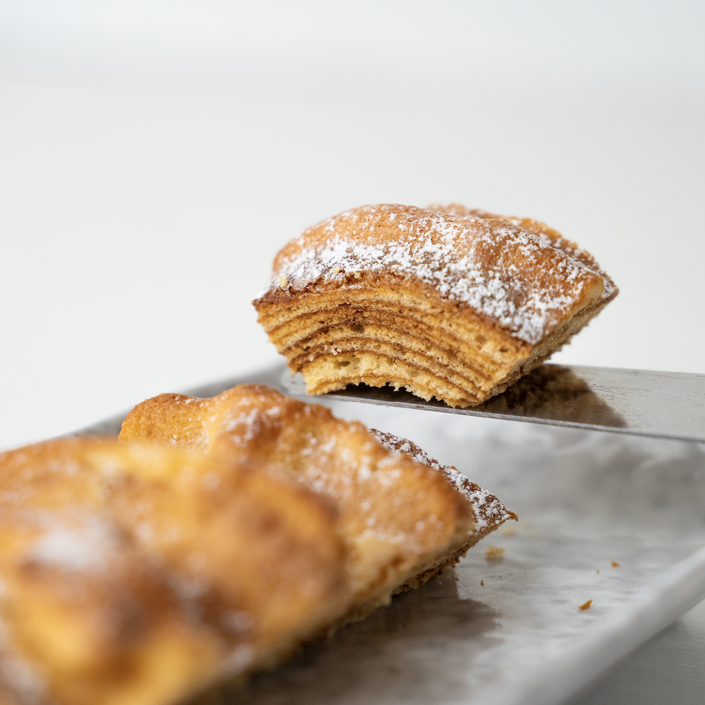 発酵バターの芳醇な香りの堅焼きで、噛むほどに味わいが増す弾力のある食感をお楽しみください。