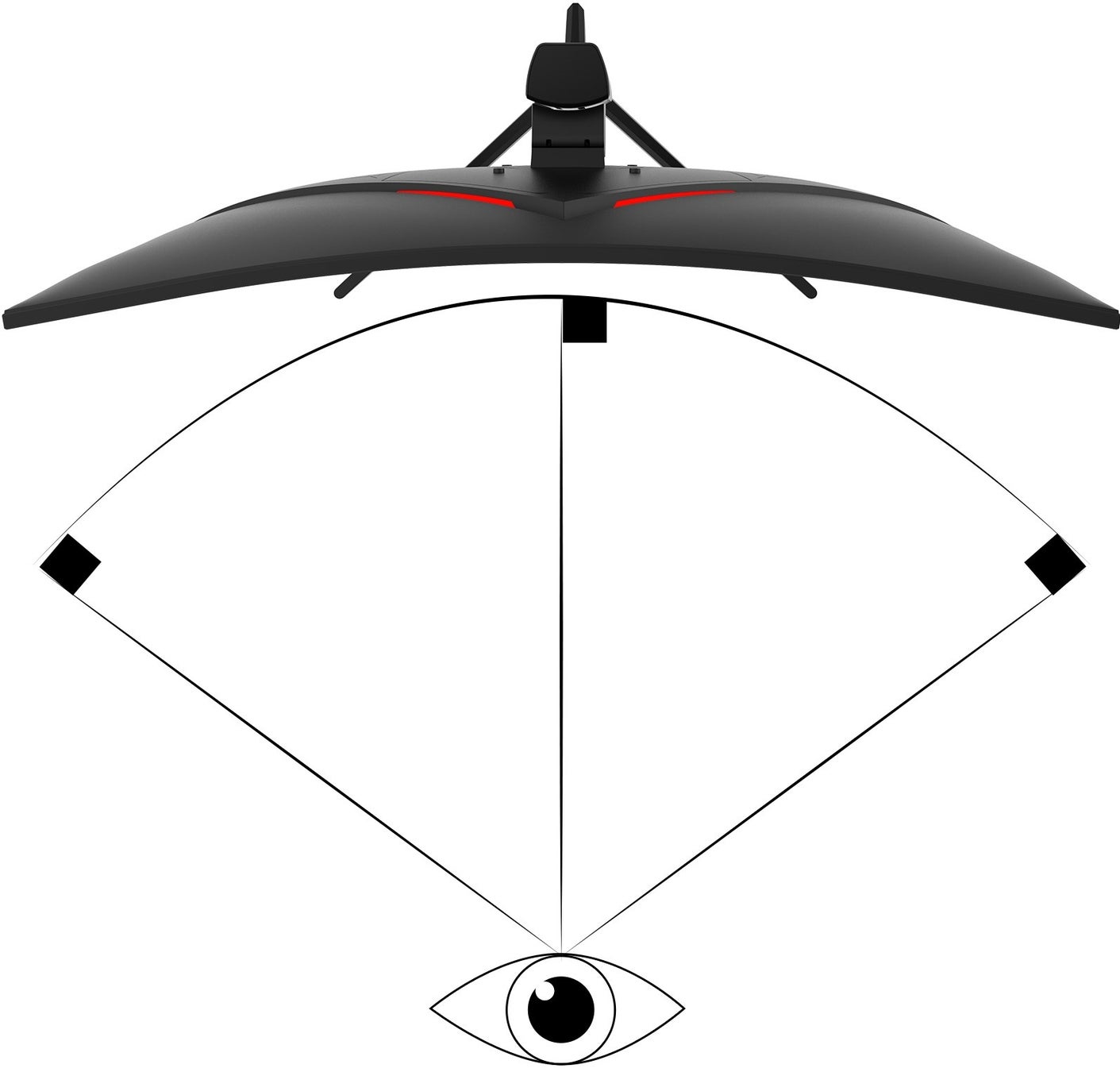 平面パネルや1800Rの曲面パネルと比較しても、本機で採用した1500Rは人間の目の自然な曲線(1000R)にほど近く、また、ブルーライトを軽減させるフィルターも搭載しており、人の目の負担や疲労が蓄積されにくいように設計しています。