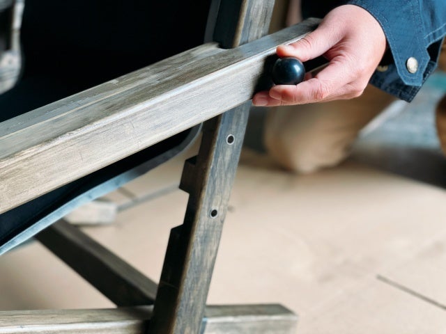 木材を主として使用していることから、スケールのあるサイズ感とは異なり、総重量6.5kgと軽量なローチェアーです。