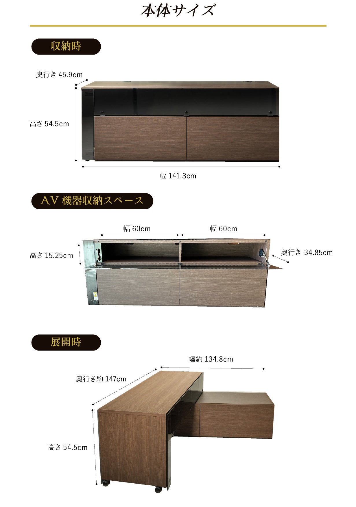 従来のキャスター付きのテレビ台のように余分にスペースを取る必要がありません。