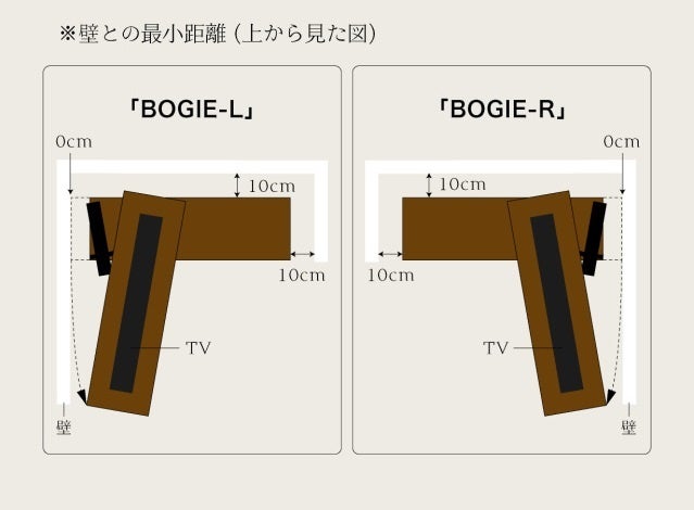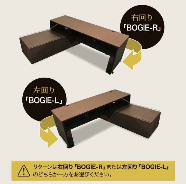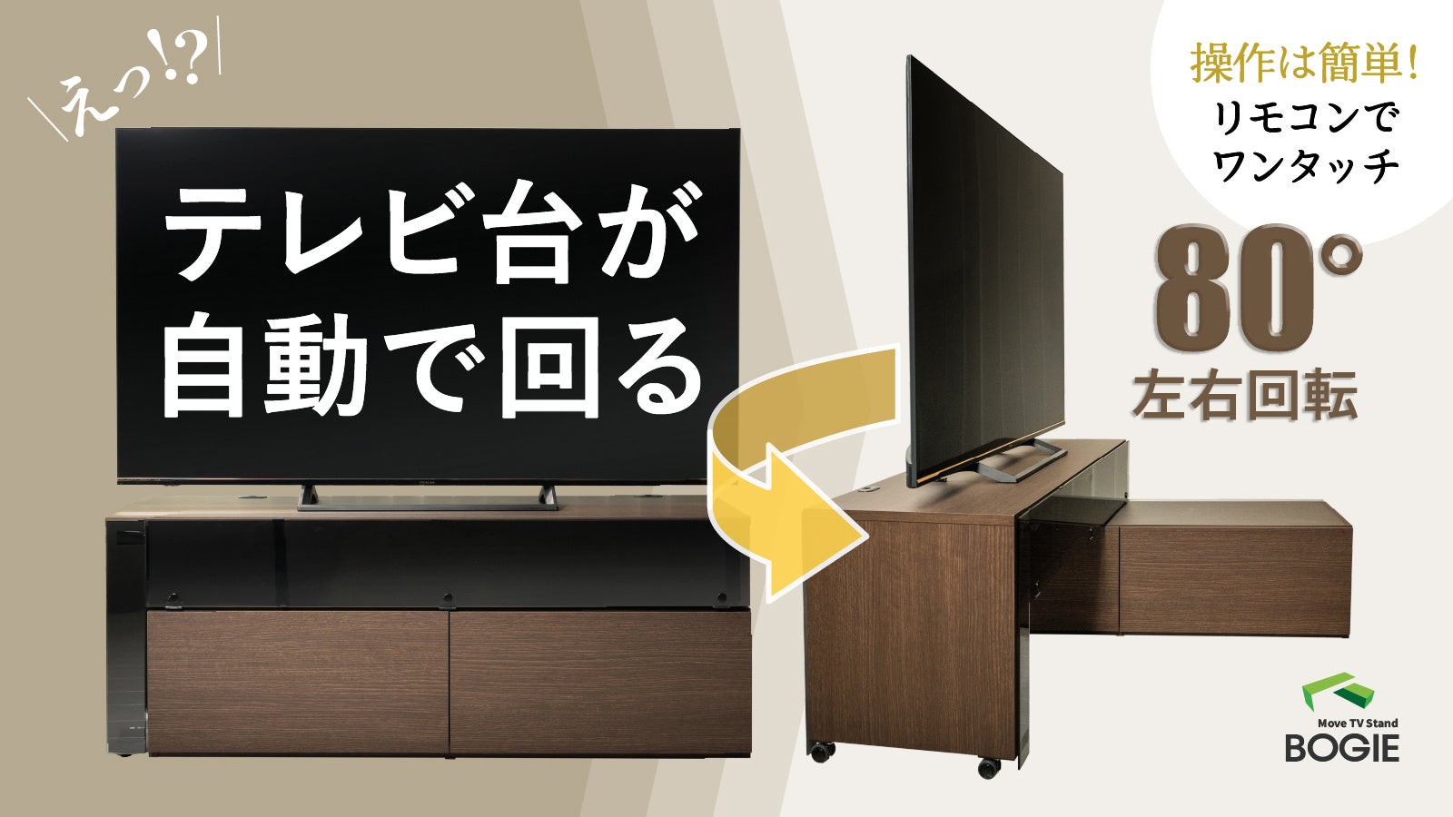 BOGIEは設計者でもある代表自らが「自宅のダイニングからテレビが観づらい」という悩みから設計・製造した自動回転テレビ台で多くのテレビのレイアウトに悩む人の助けとなる商品です。