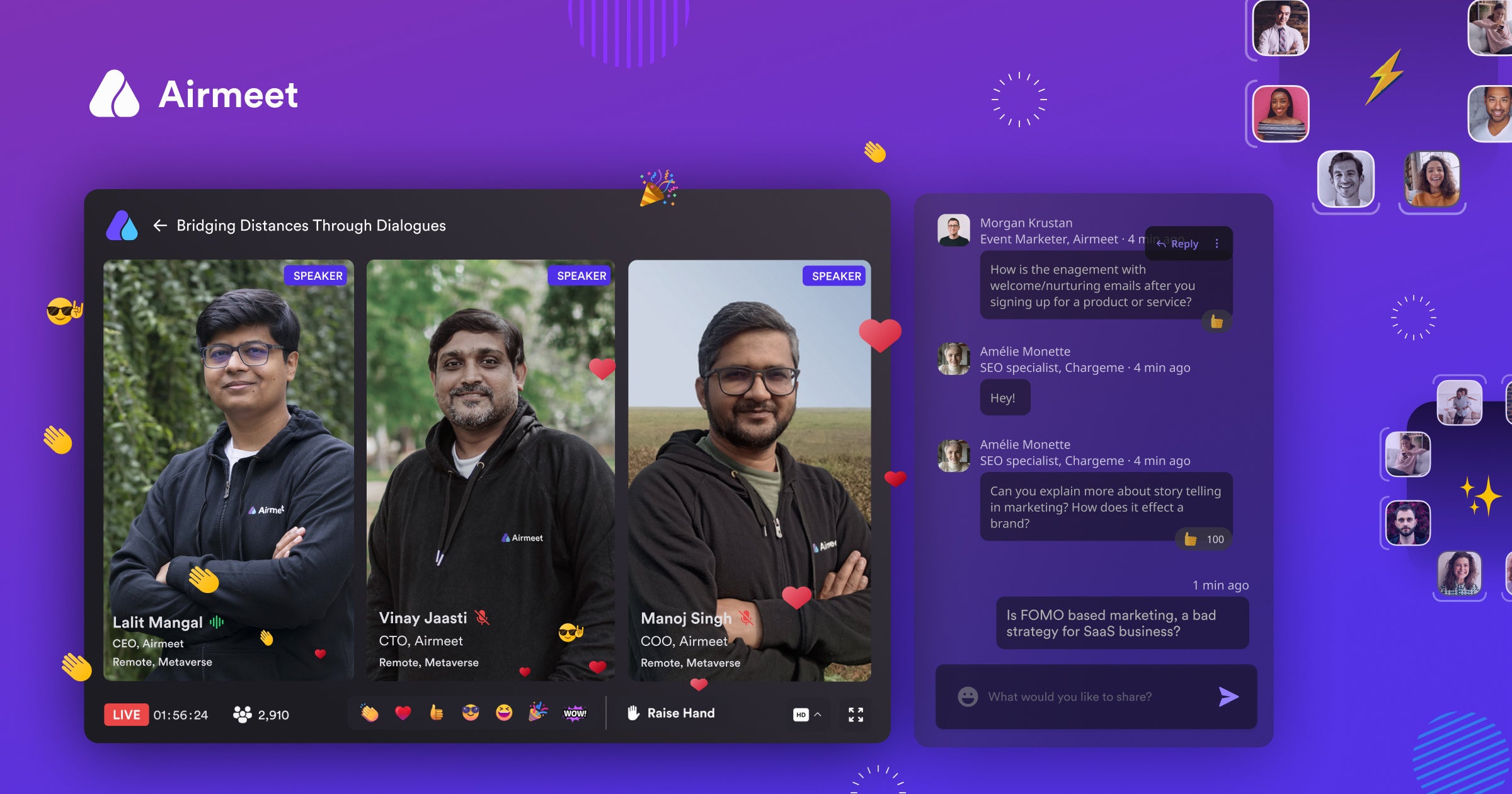 AirmeetのCEO兼共同設立者であるLalit Mangalは「顧客エンゲージメントにおいて新しいソリューションの必要性が急速に増している中、ブランドはバーチャル空間でも人間味を持ちながら顧客とコミュニケーションしなければなりません。私たちのミッションは、常にエンゲージメントに焦点を当て、インタラクティブなイベントを通して、企業の顧客エンゲージメントの拡大を支援することです。」と話しています。
