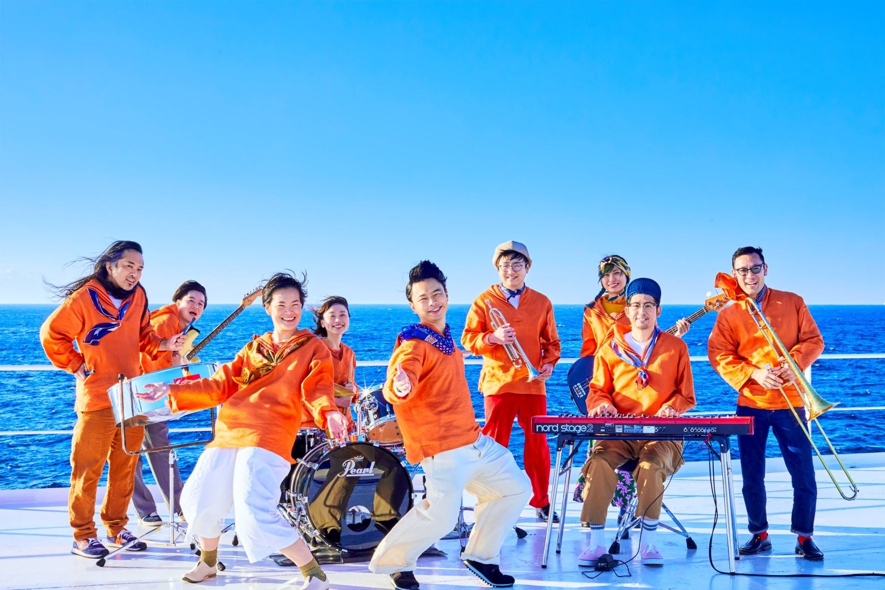 レーベル設立20周年を迎える「カクバリズム」に所属するアーティストたちが集い、今回の新船オリジナルテーマソングのためにスペシャルバンド「PACIFIC ORANGE BAND」を結成!