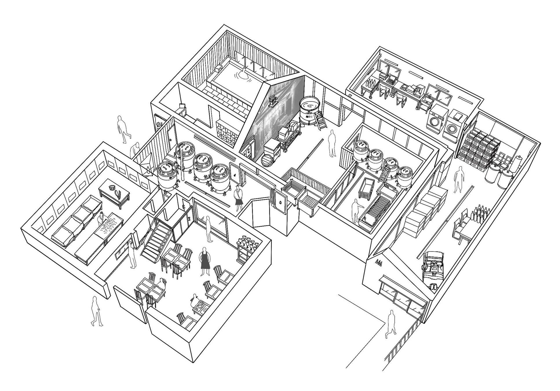 当蔵は約250㎡のマイクロブルワリーとして以前の1/3以下のサイズで再生しました。レストランが併設された限られた空間で、小型タンク(1800Lが4台、900Lが4台)を採用し、杜氏 入江将之による「全工程手作業の丁寧な酒造り」での小規模生産を行っています。